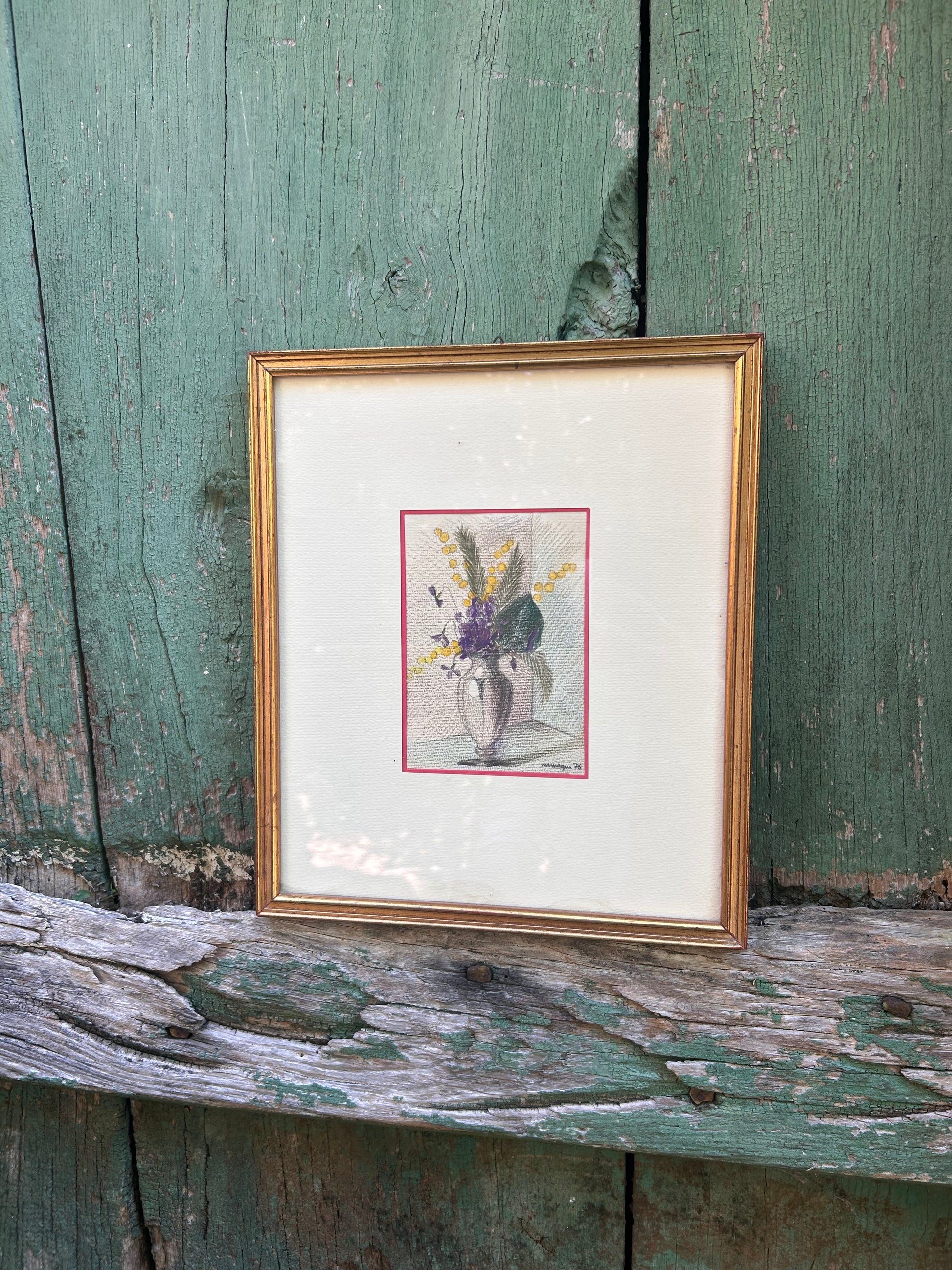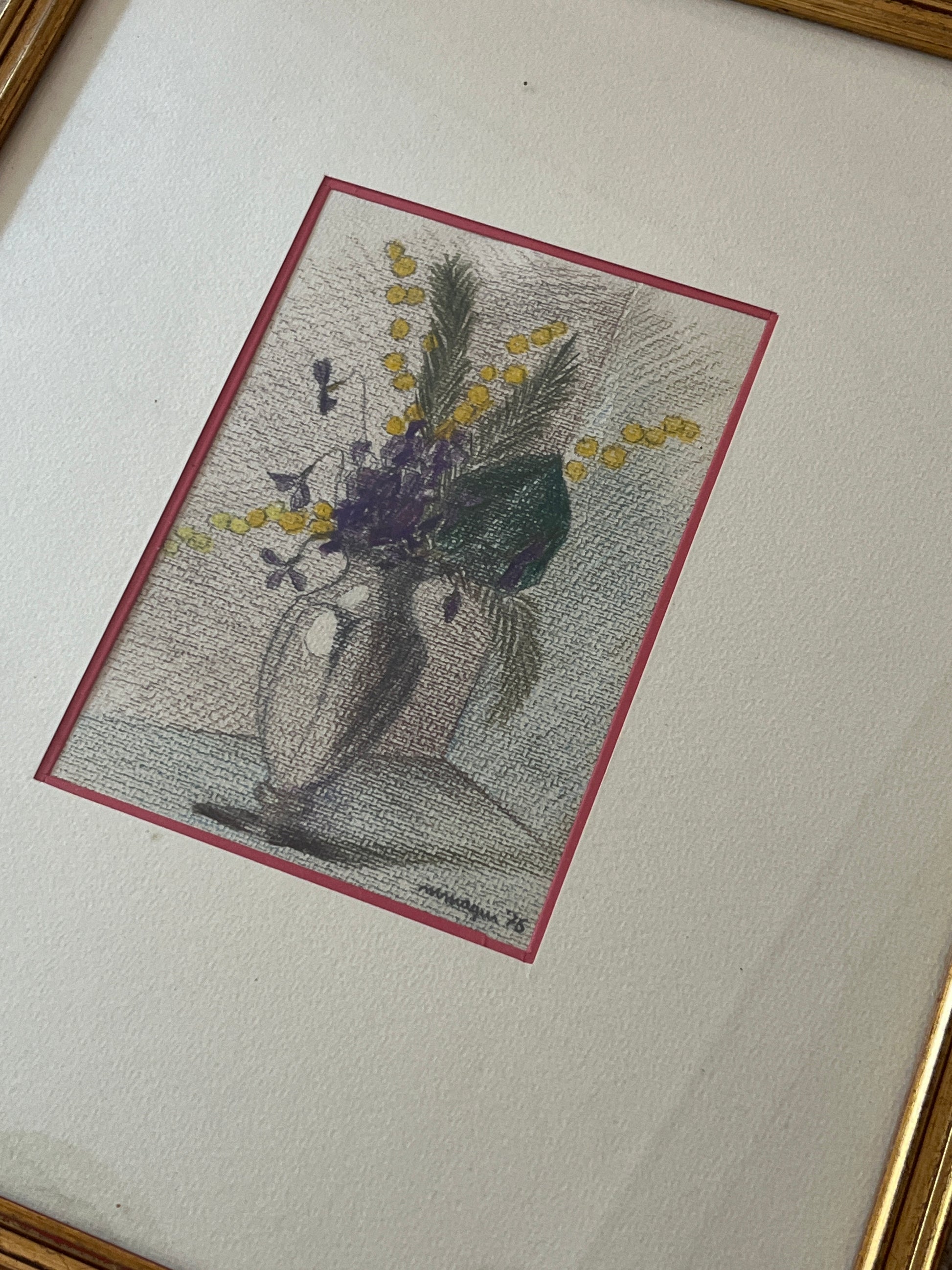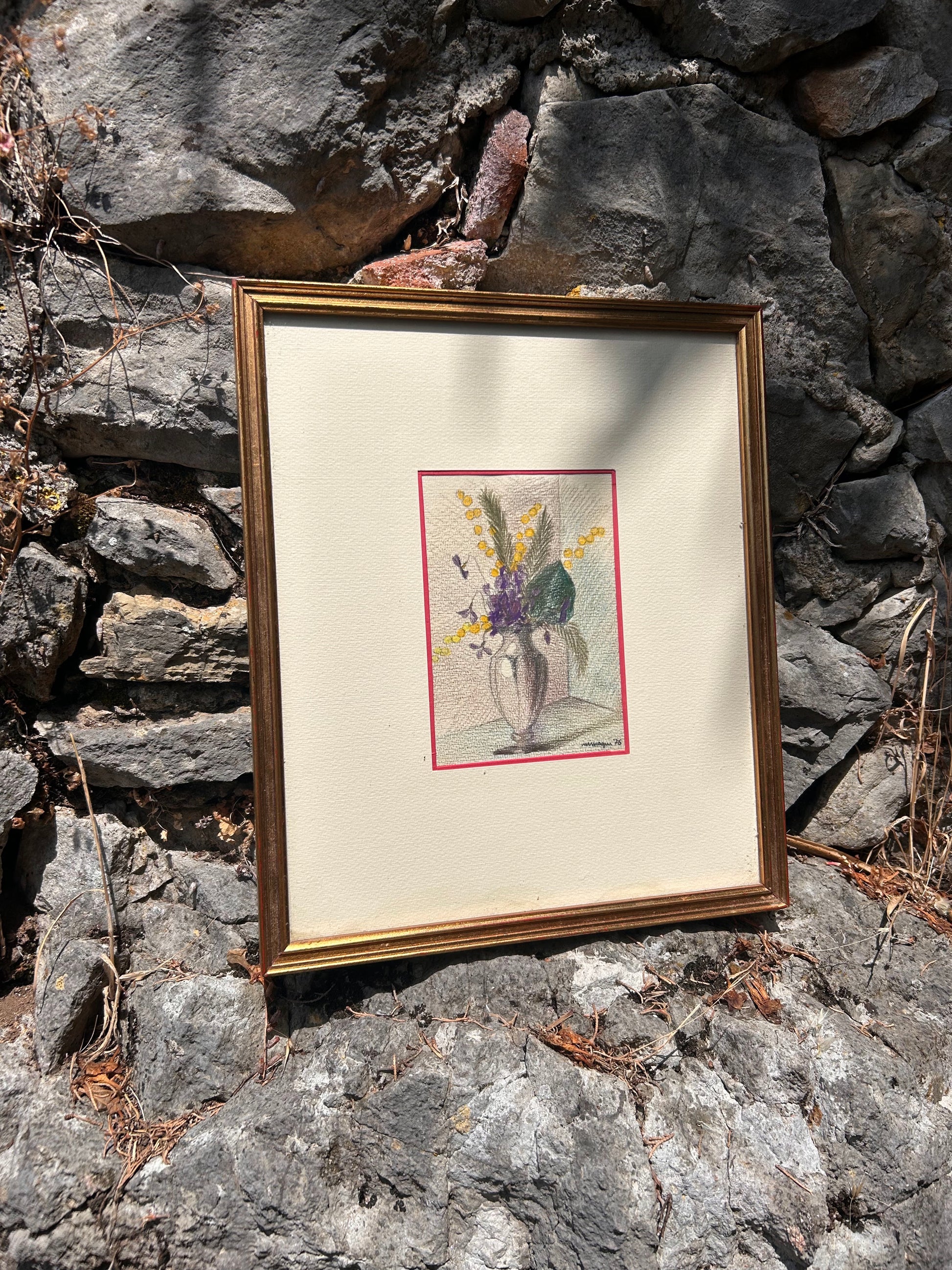 Tegning af blomsteropsætning. Signeret fra 1976.