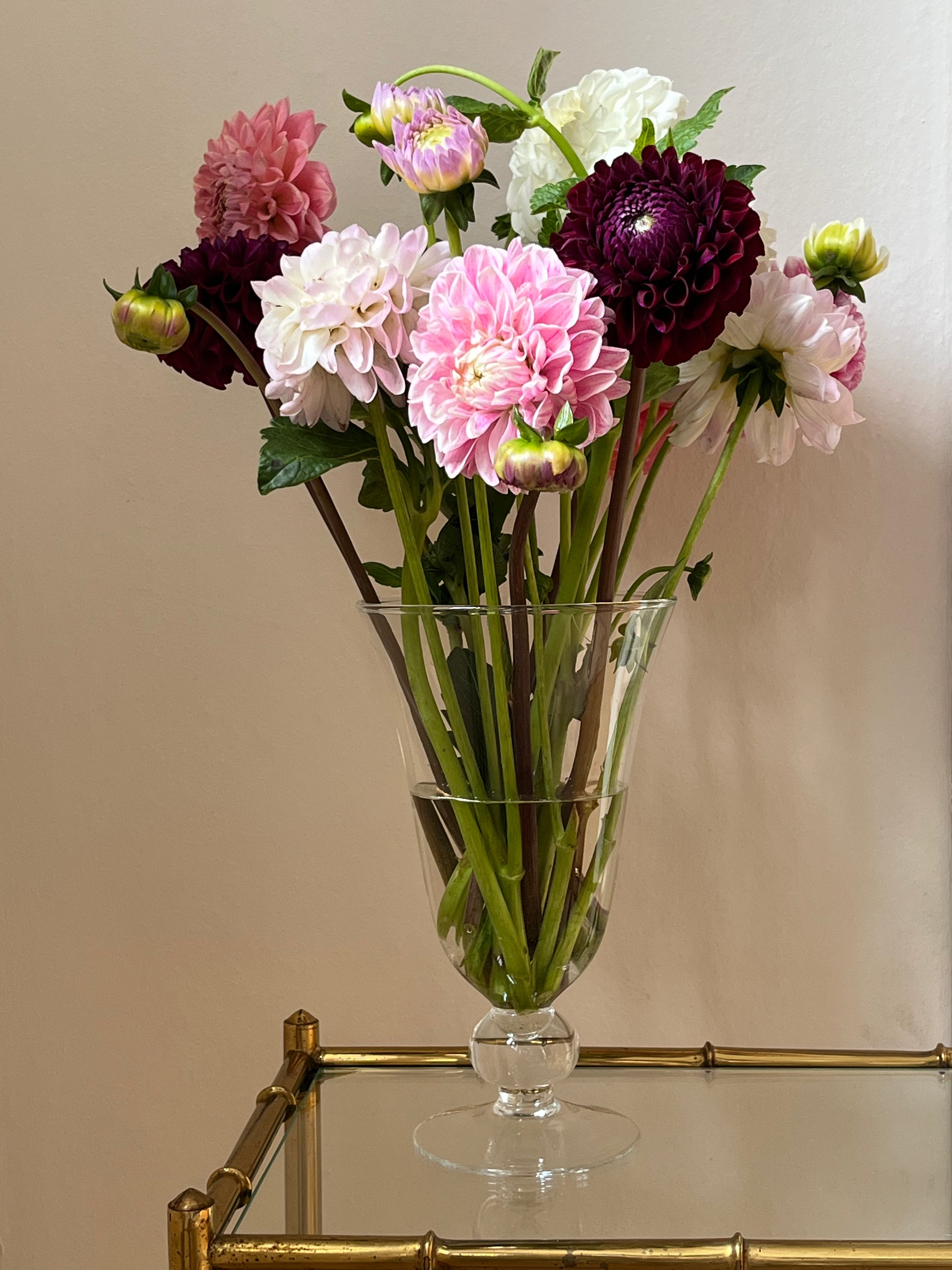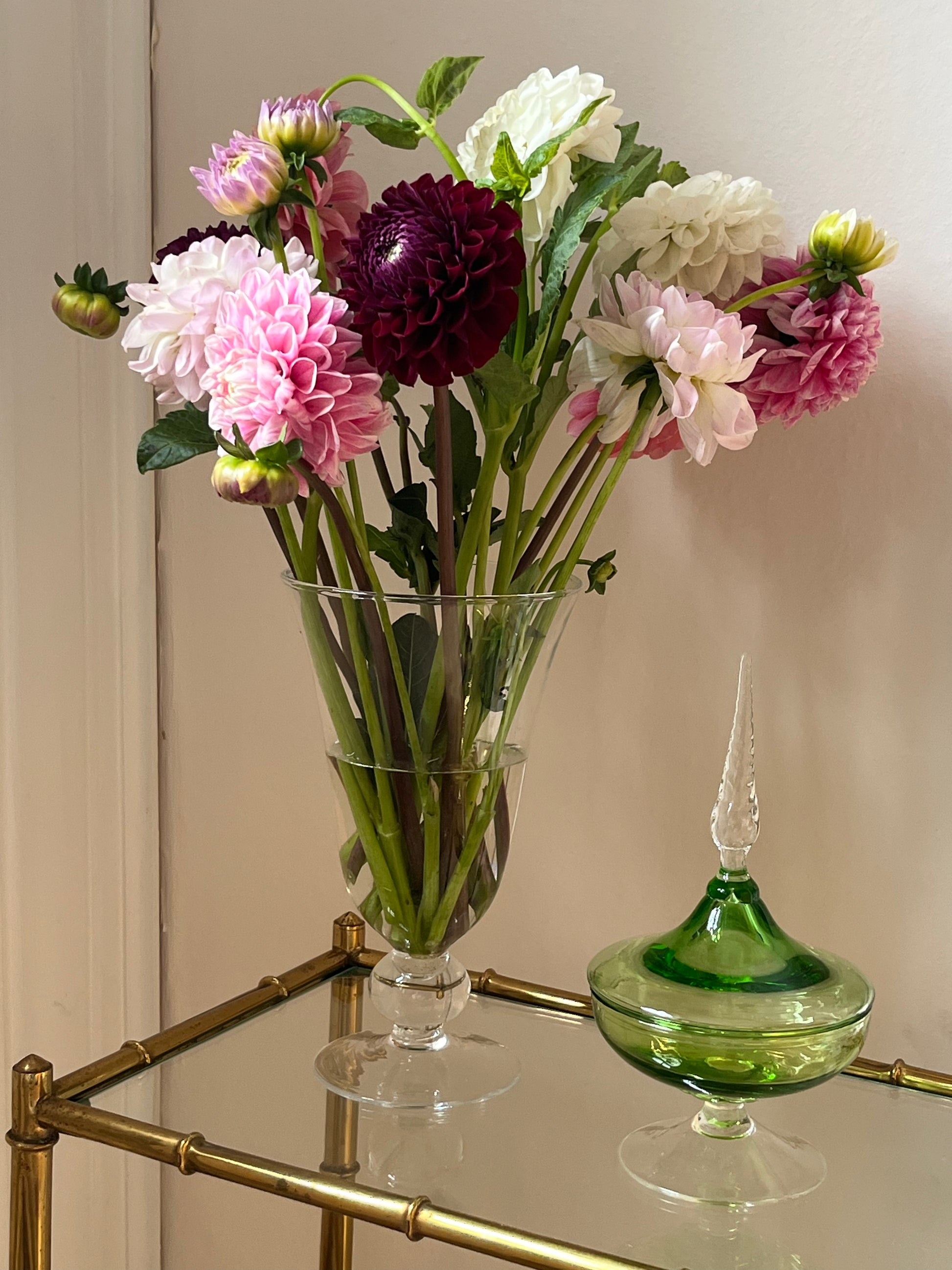 Mundblæst glasvase på fod.