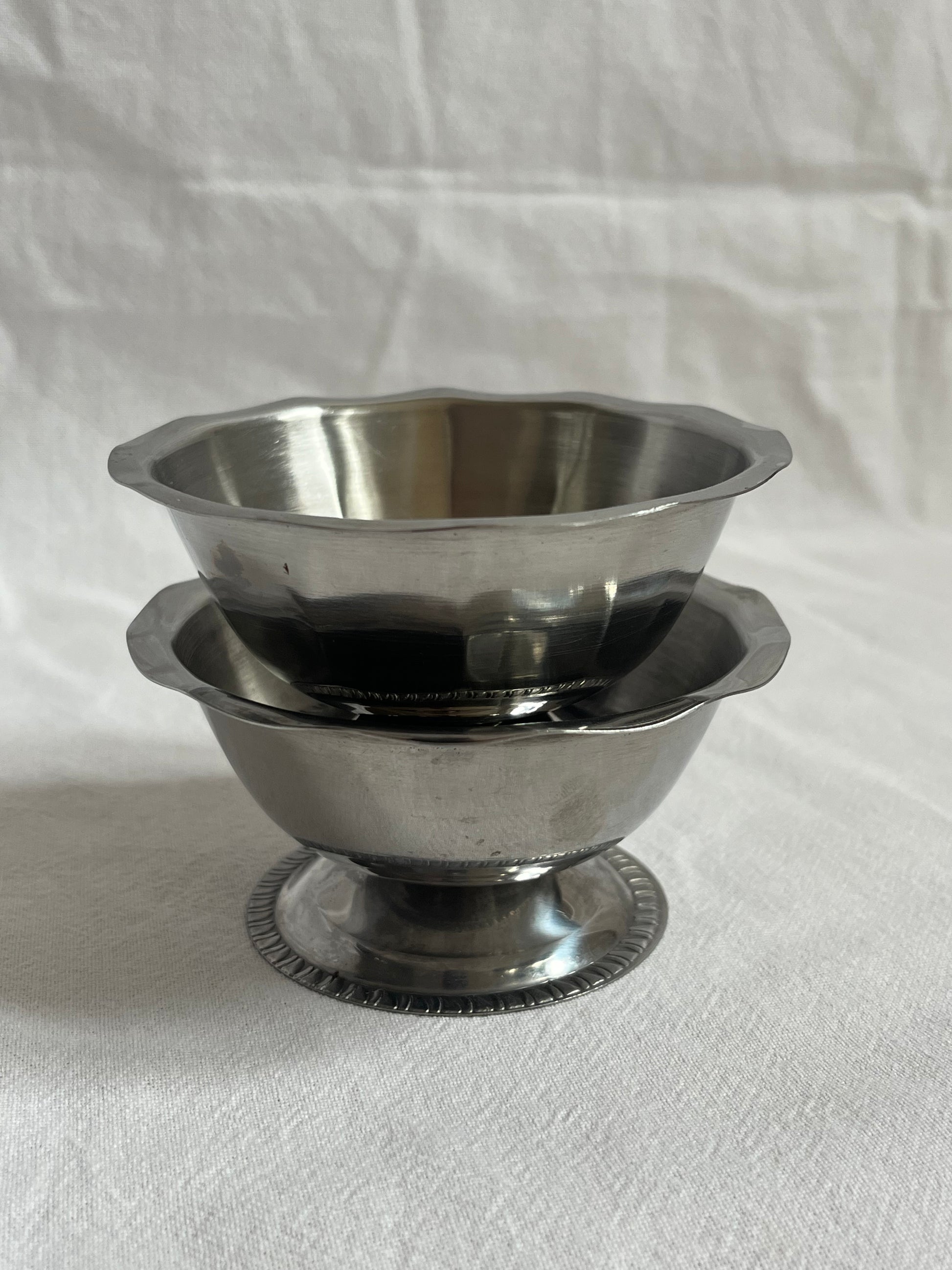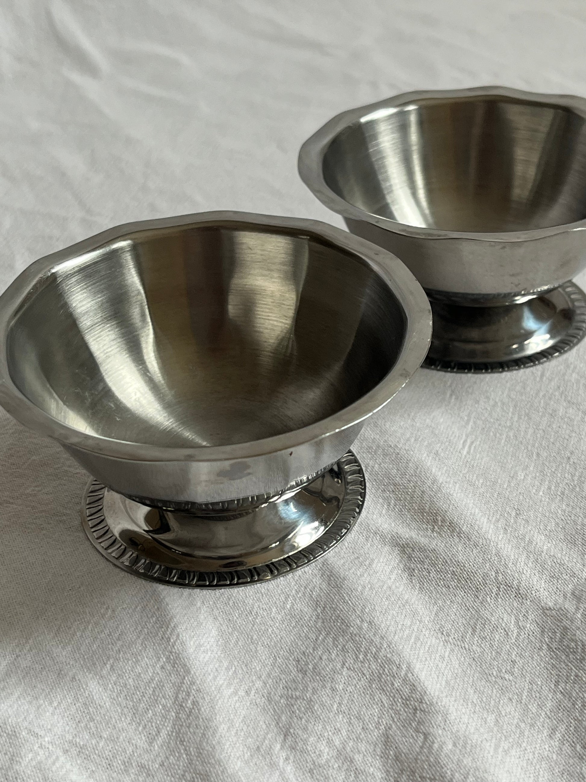 Iscoupe med lav fod. Smuk dekoration på fod og detaljer på kanten. Sælges i sæt af 2 stk.
