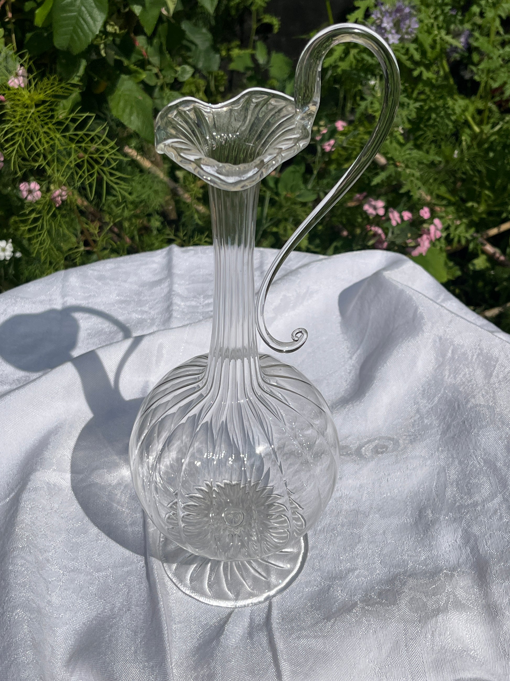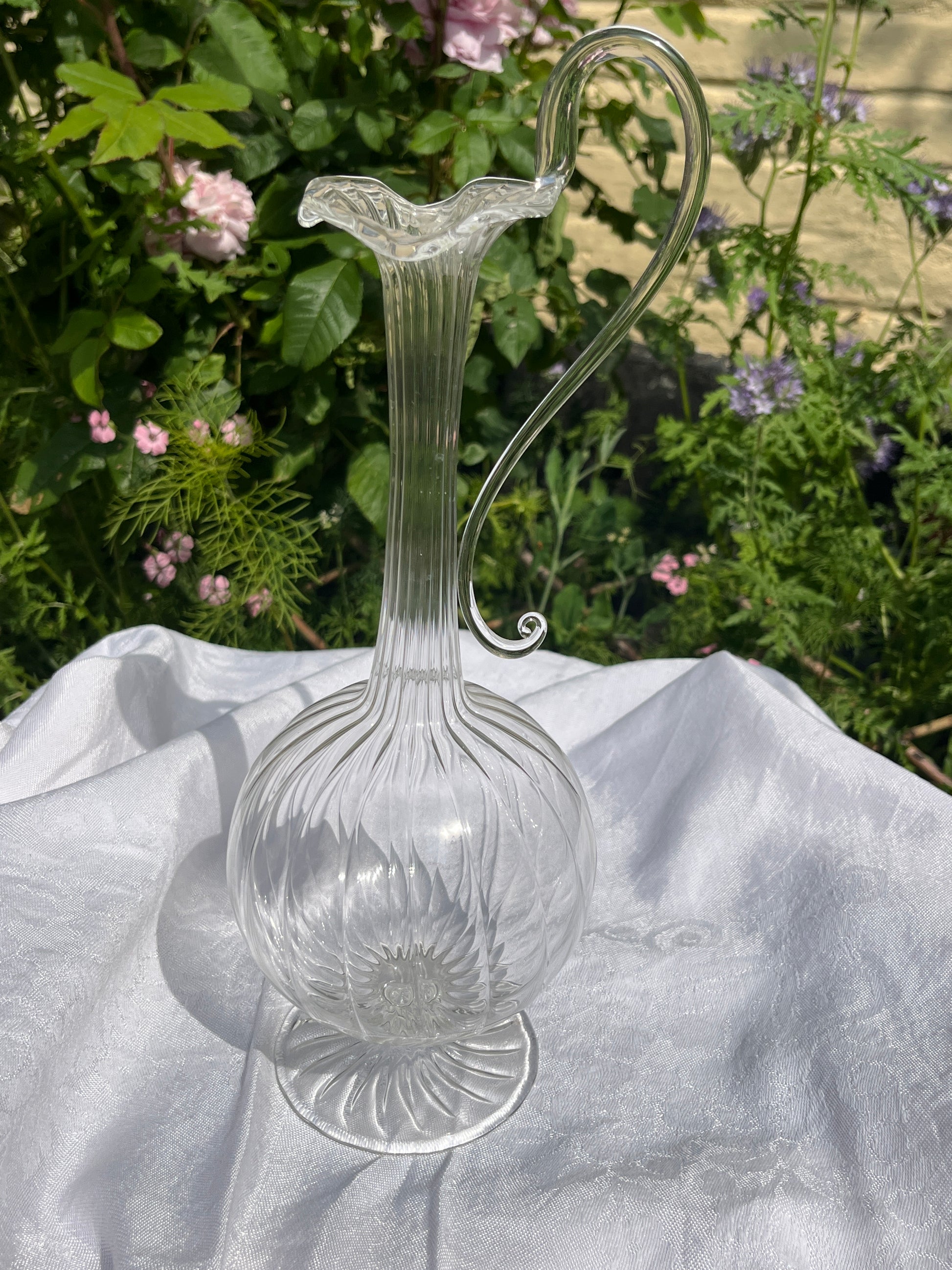 Delikat mundblæst glas karaffel / kande med swirl effekt.
