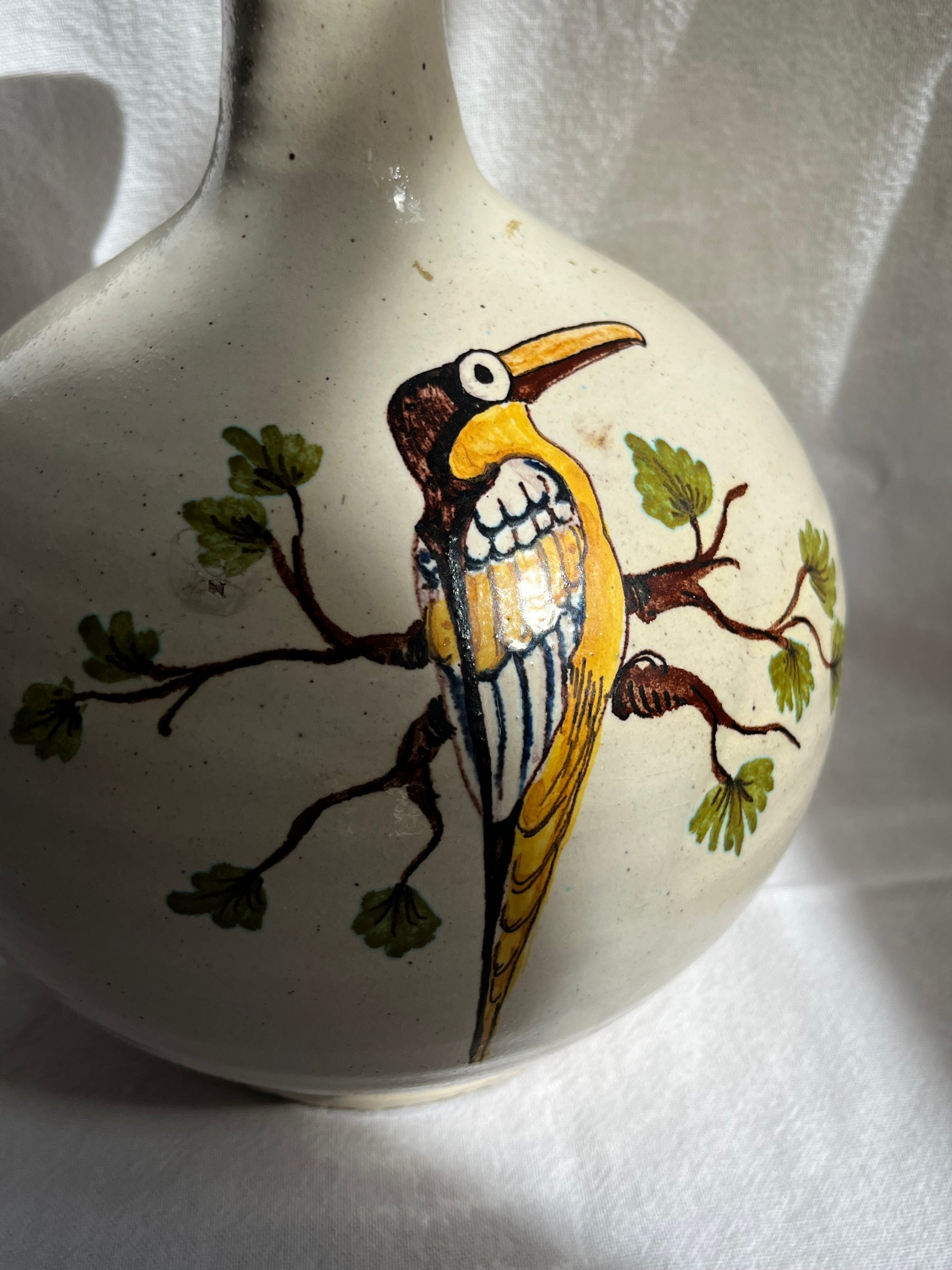 Patineret keramik vase med tukan motiv