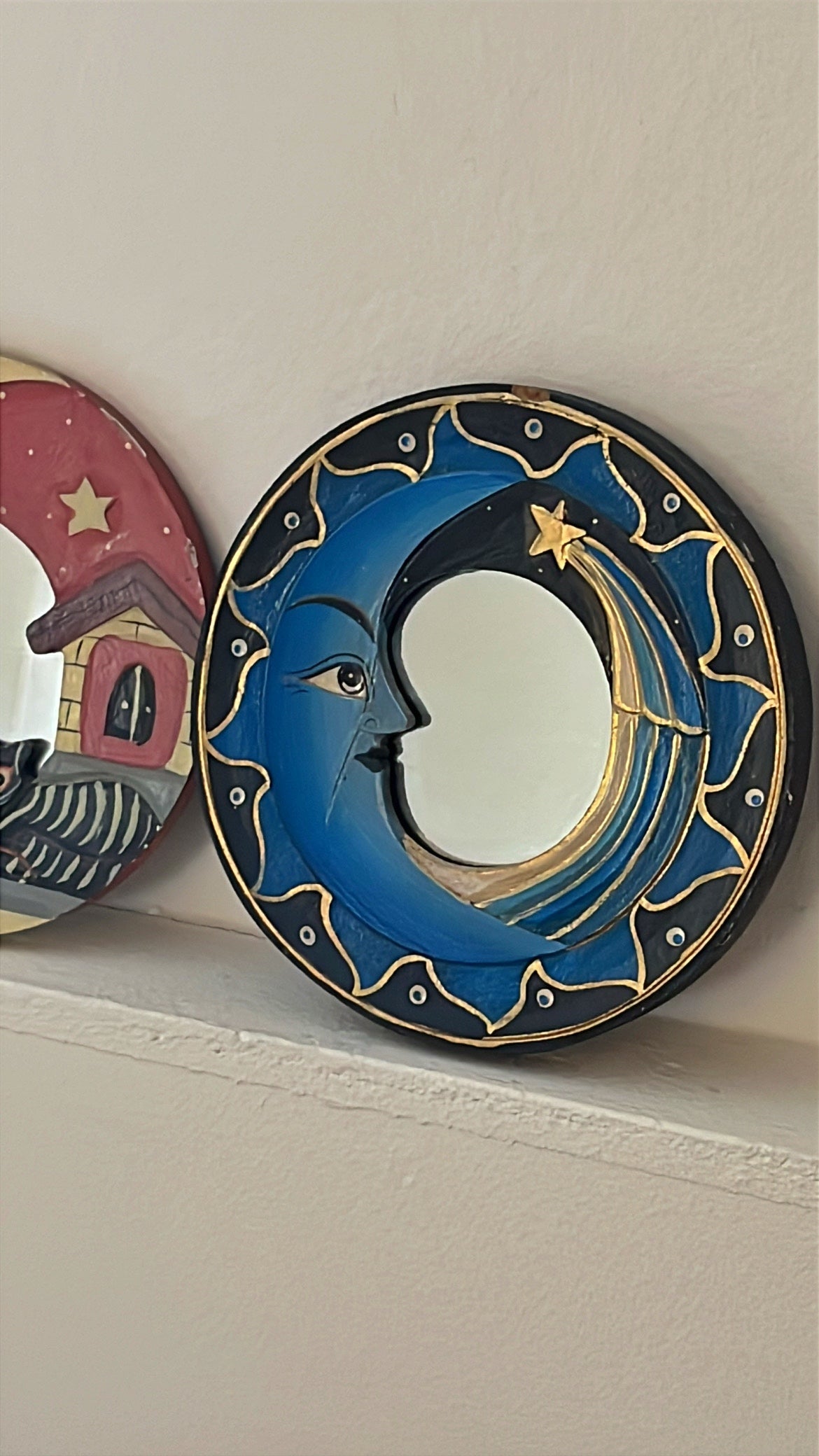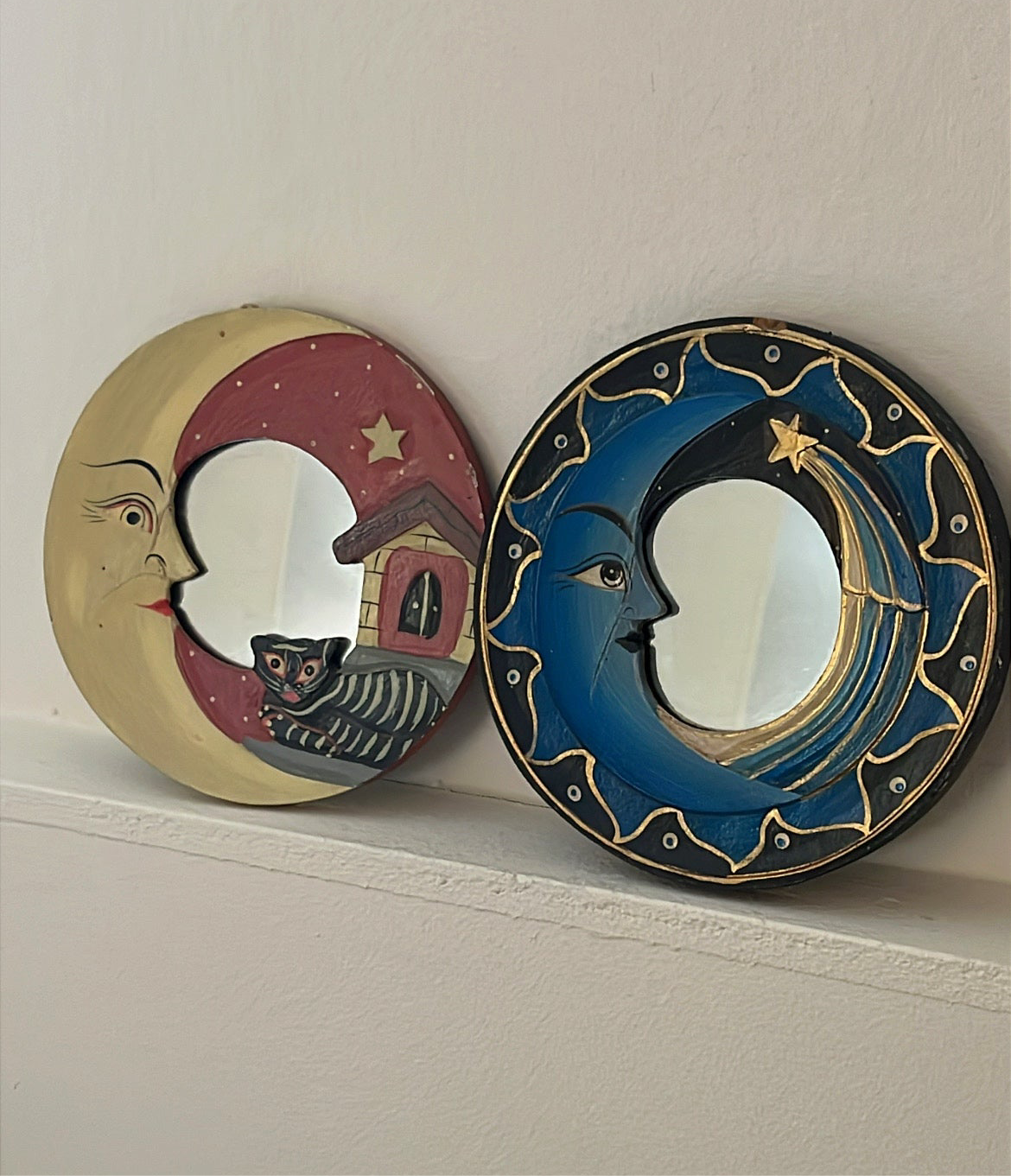 To fine små månespejle. Perfekt som vægdekoration eller til børneværelset.
