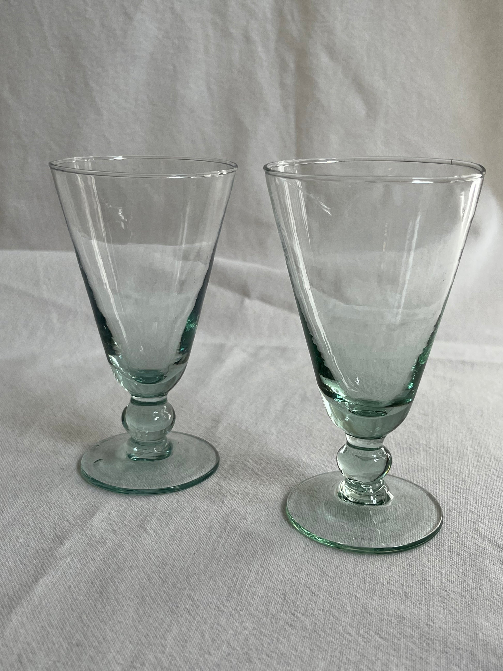 Sæt mundblæst likør glas i smuk grønlig farve.