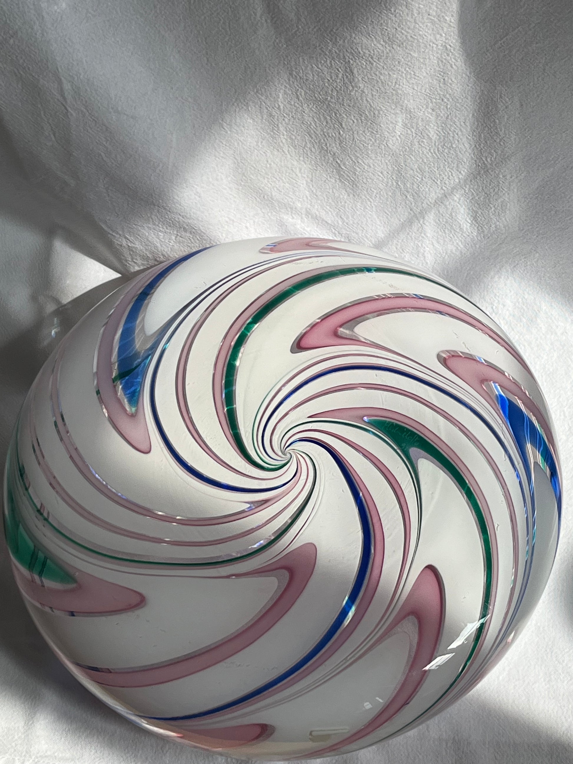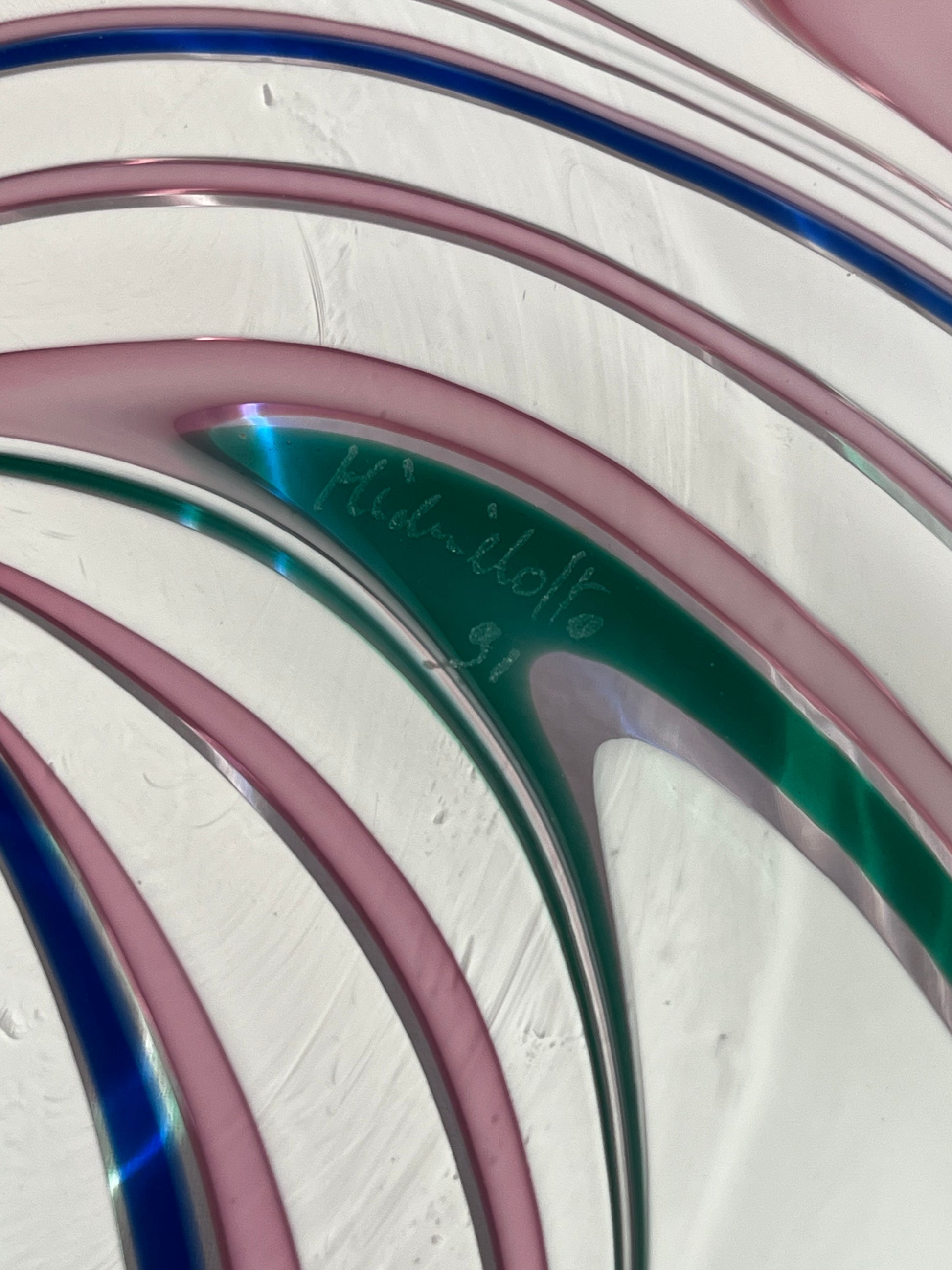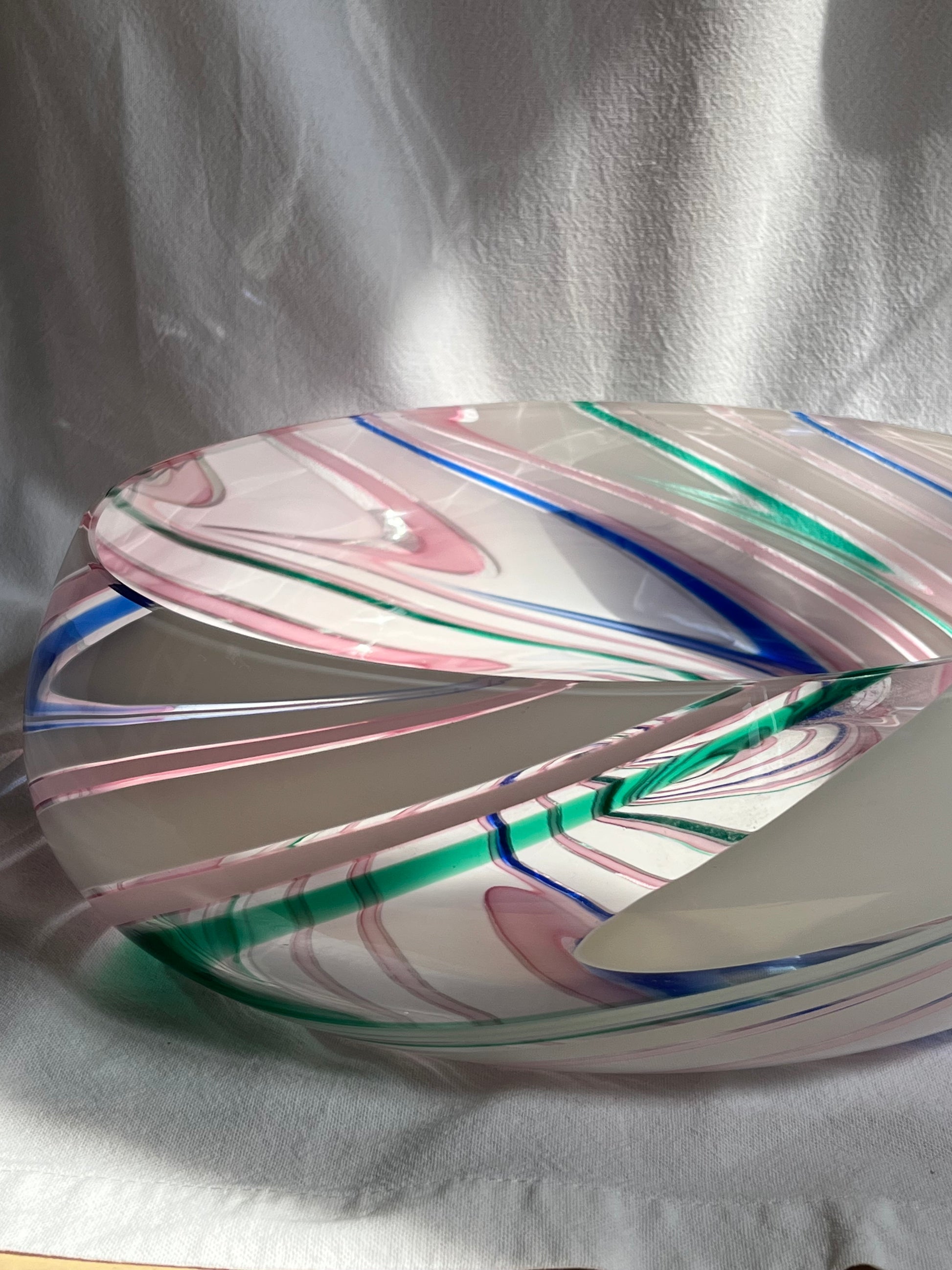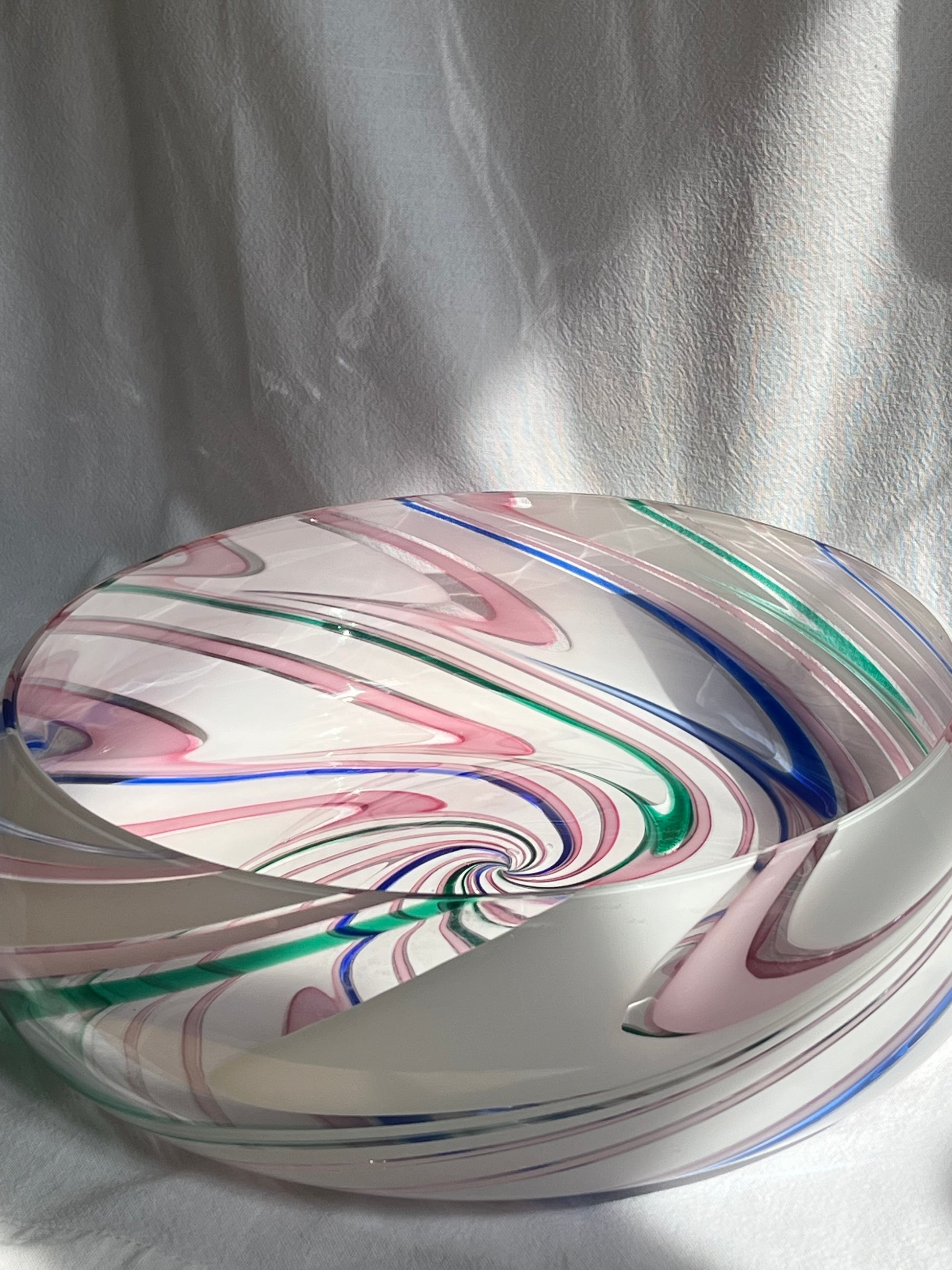 Stor vintage Murano Michielotte rainbow skål med signatur.