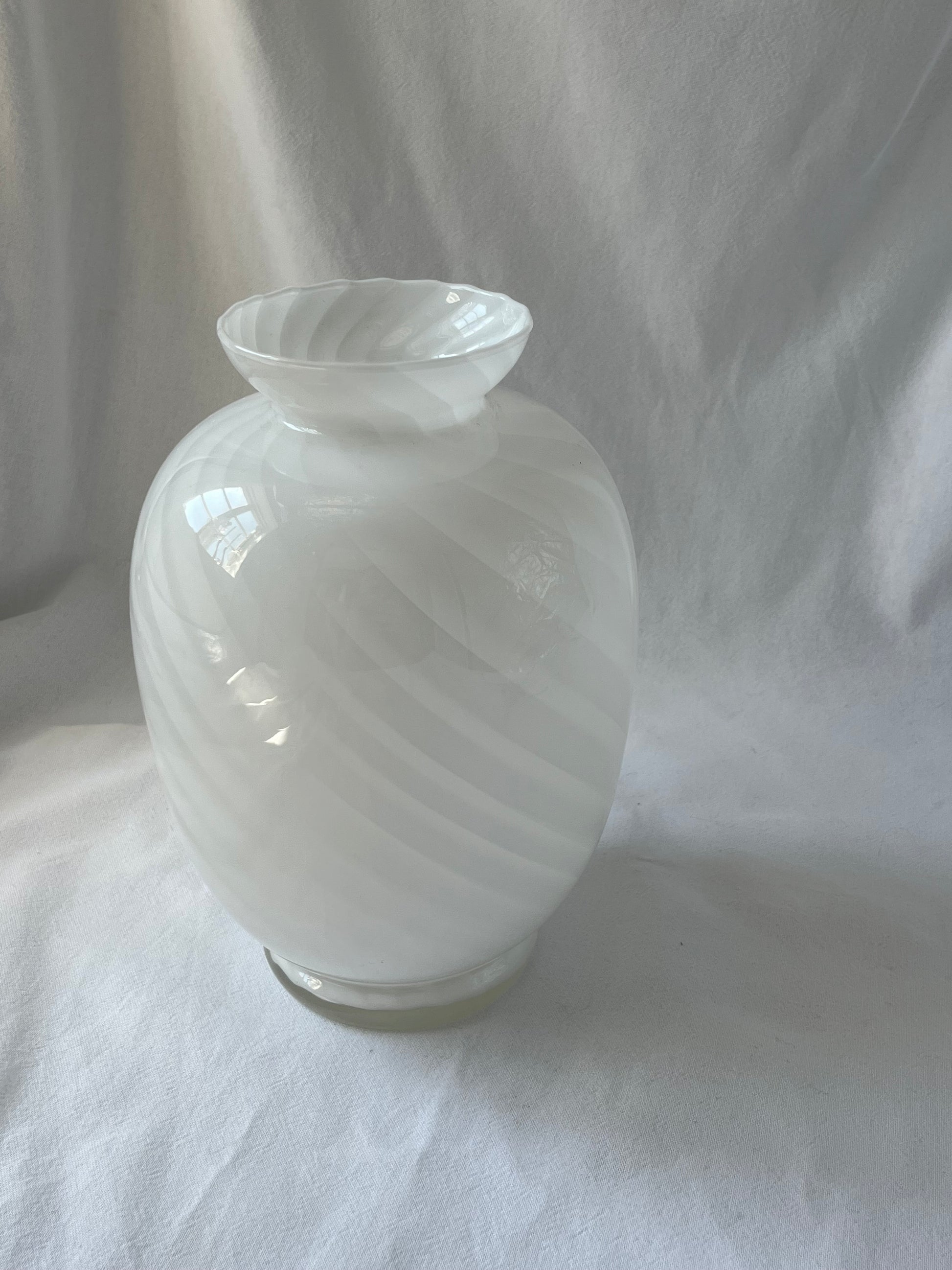 Klassisk og tidsløs hvid swirl murano vase fra 1970’erne.