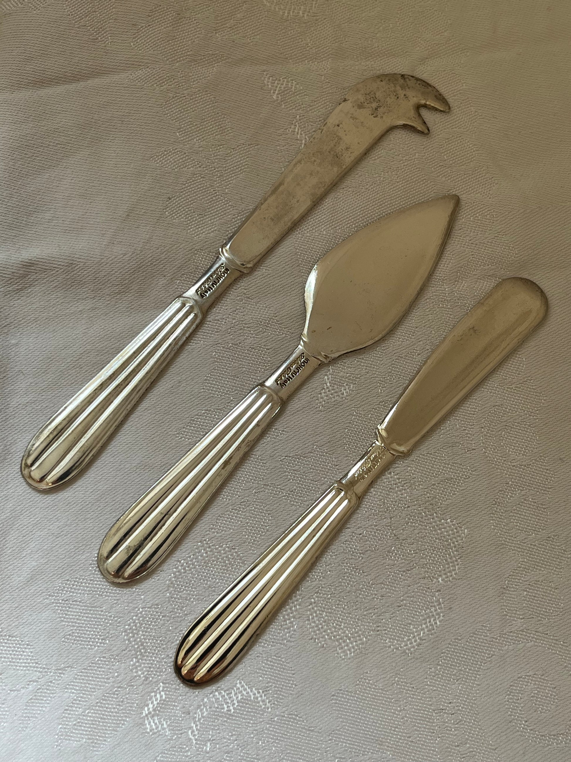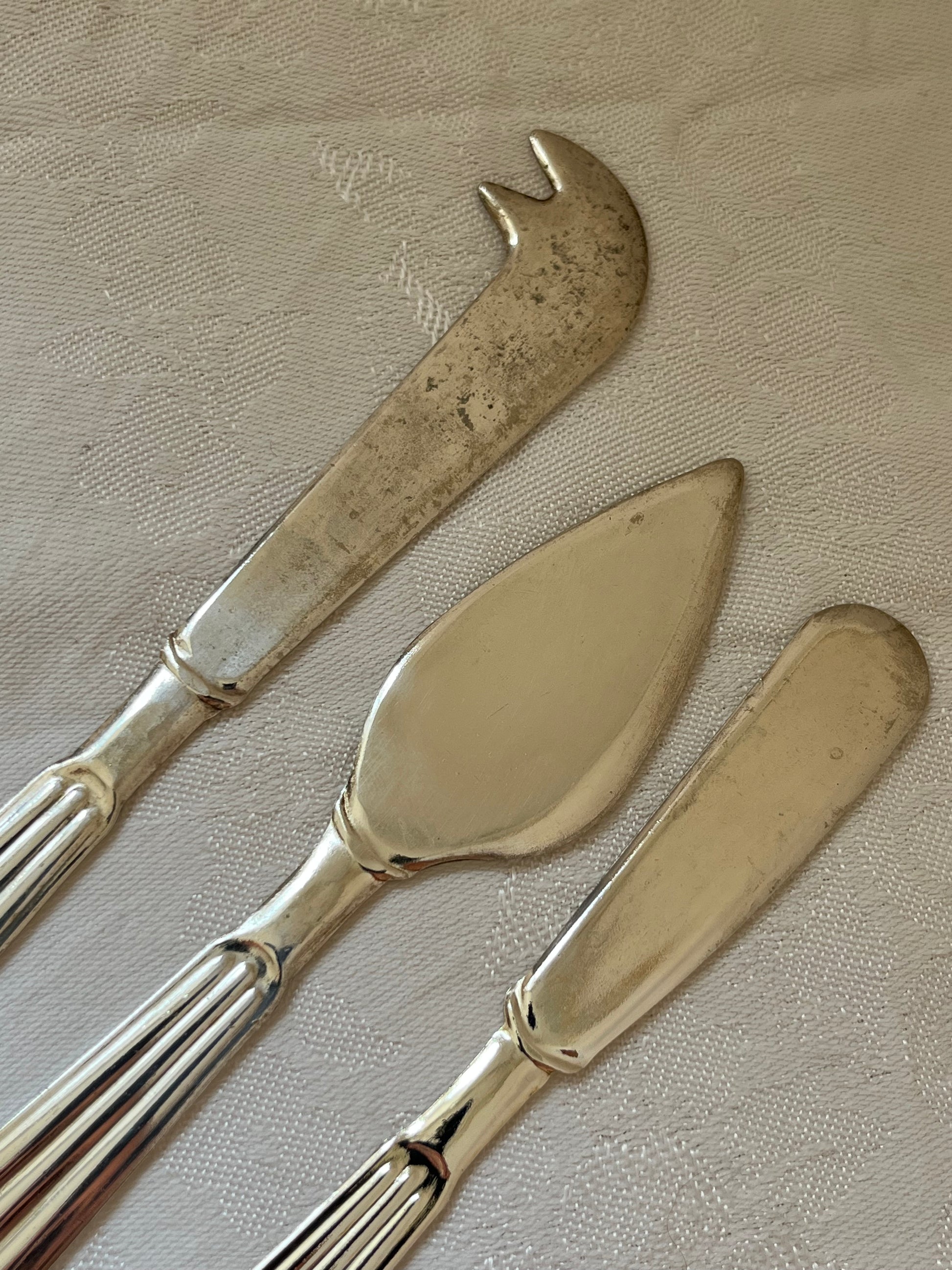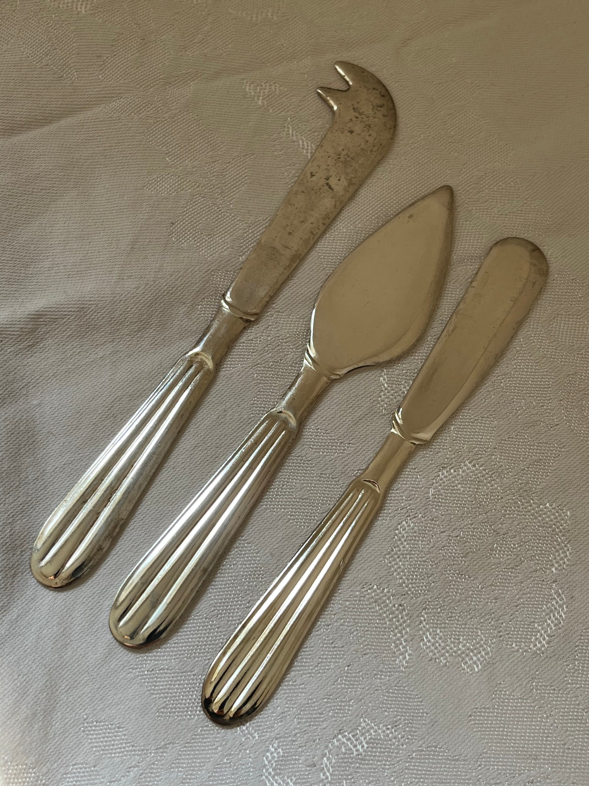 Smuk rillet skaft. Alle knivene er i sølvplet.