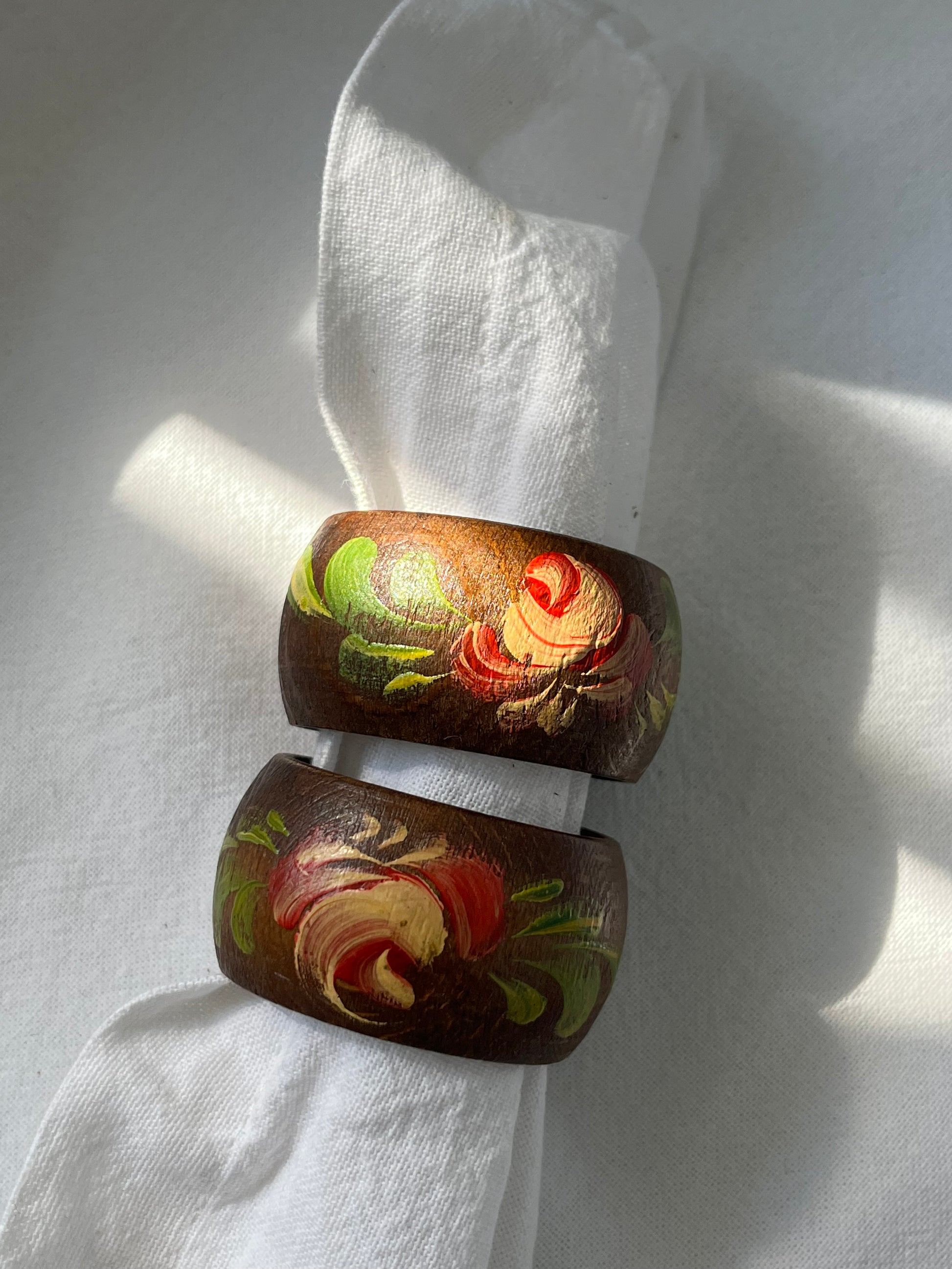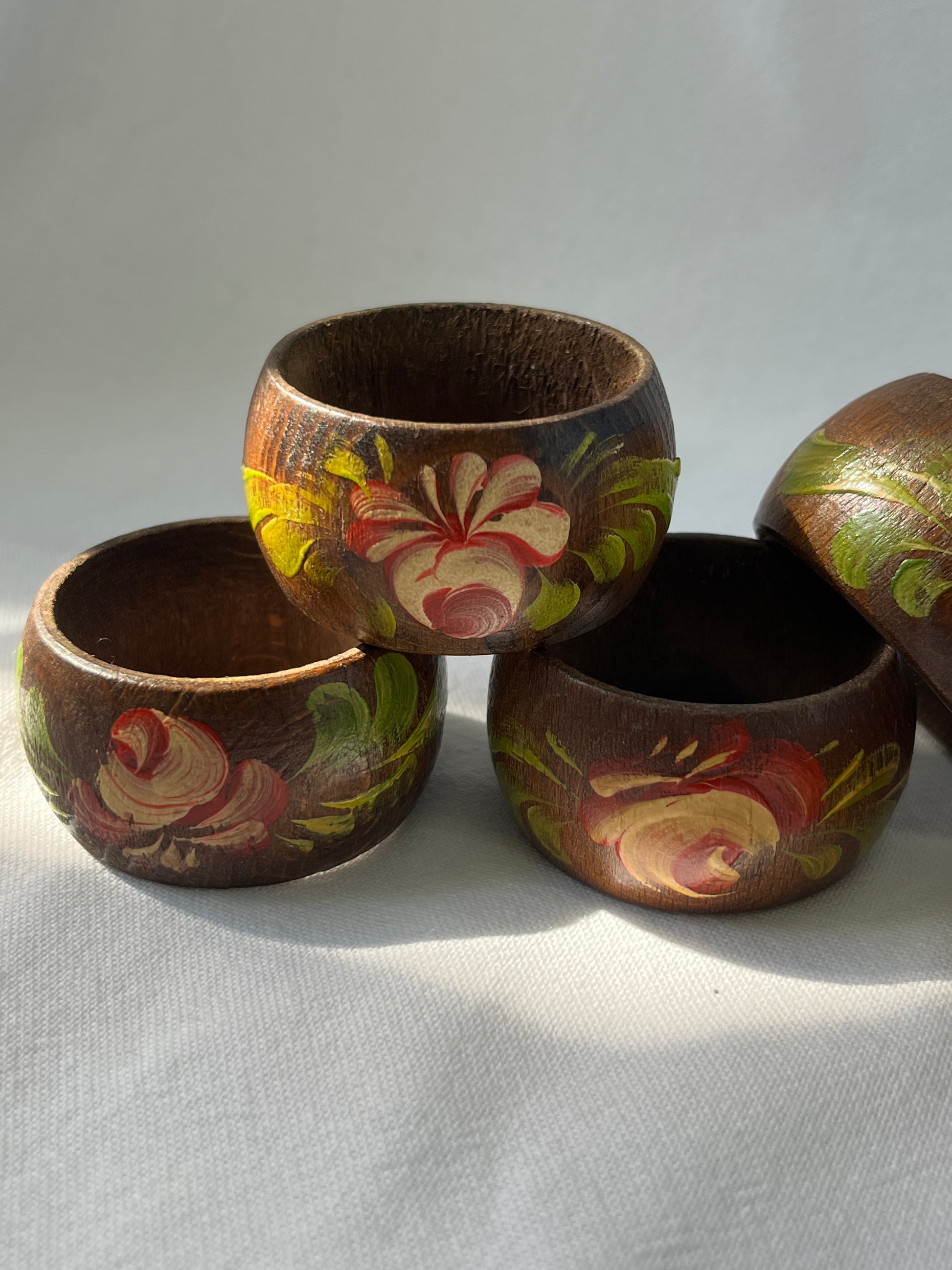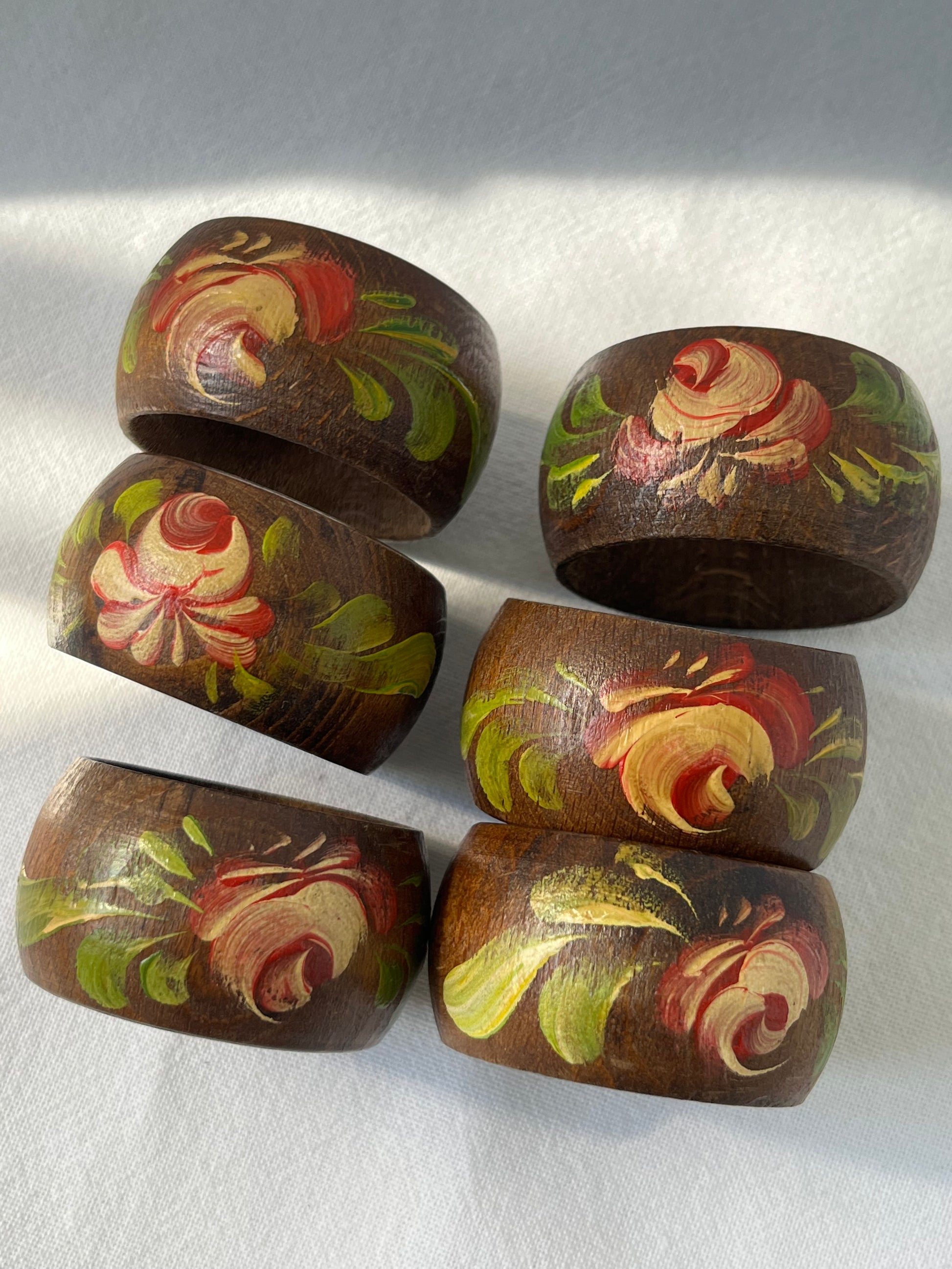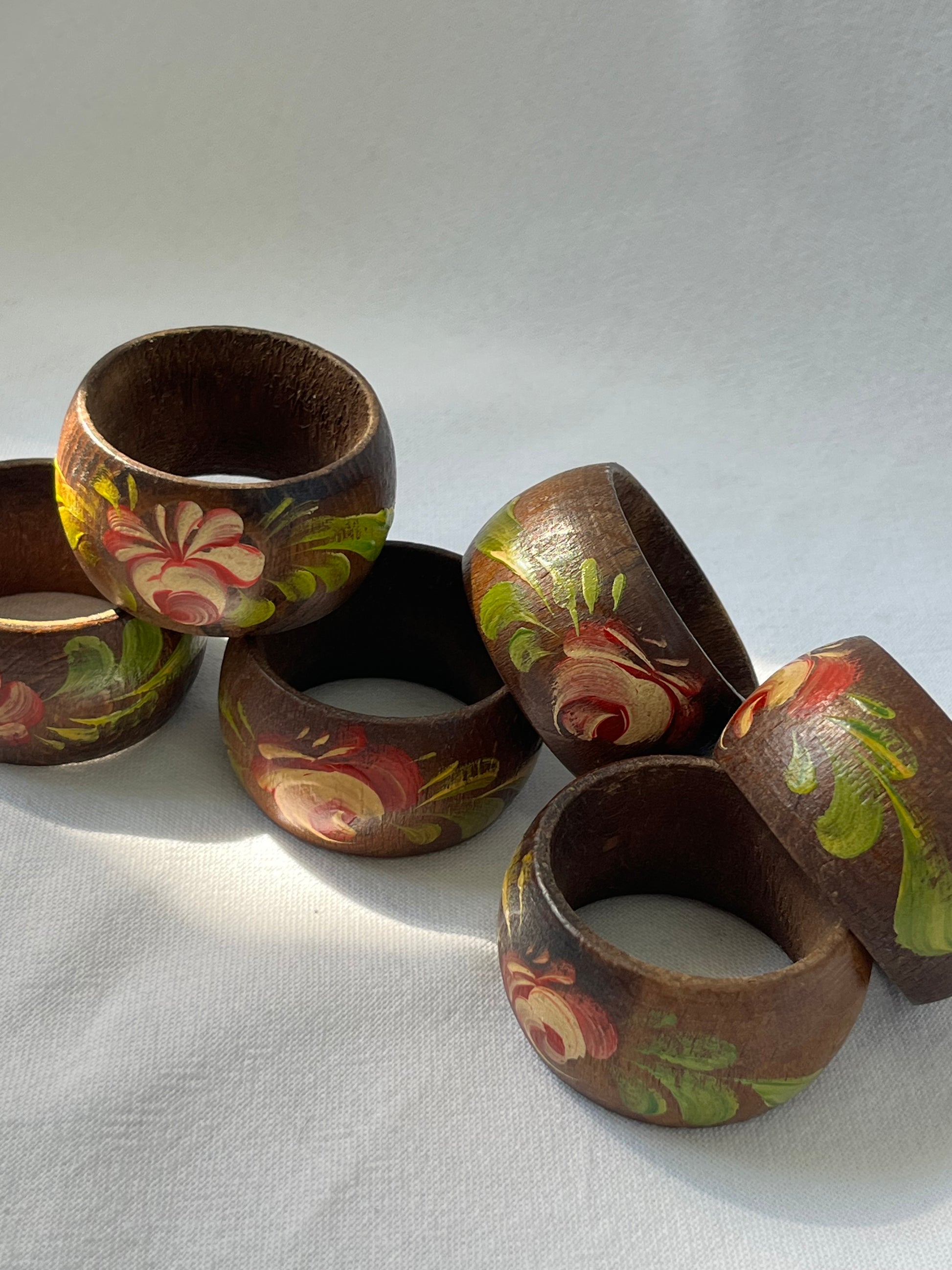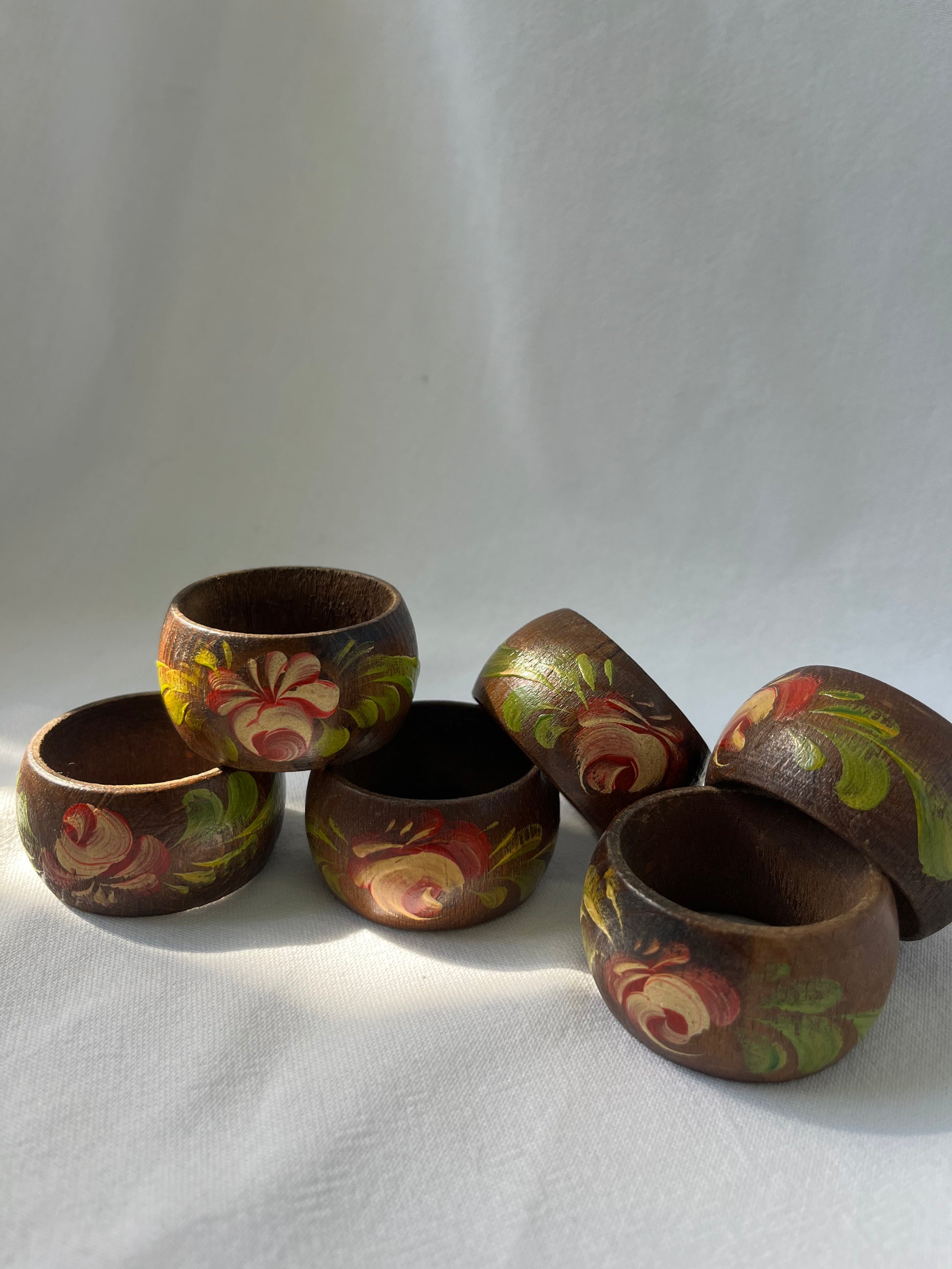 Håndmalet servietringe i træ. Sæt af 6 stk.