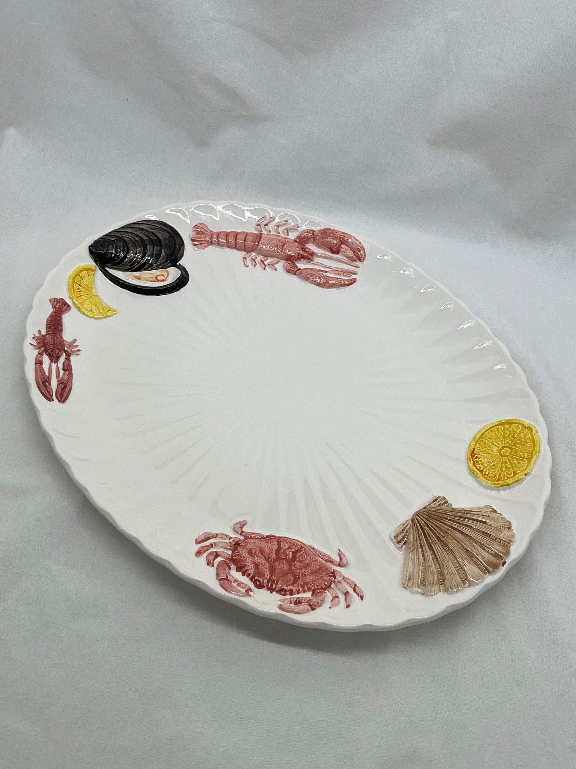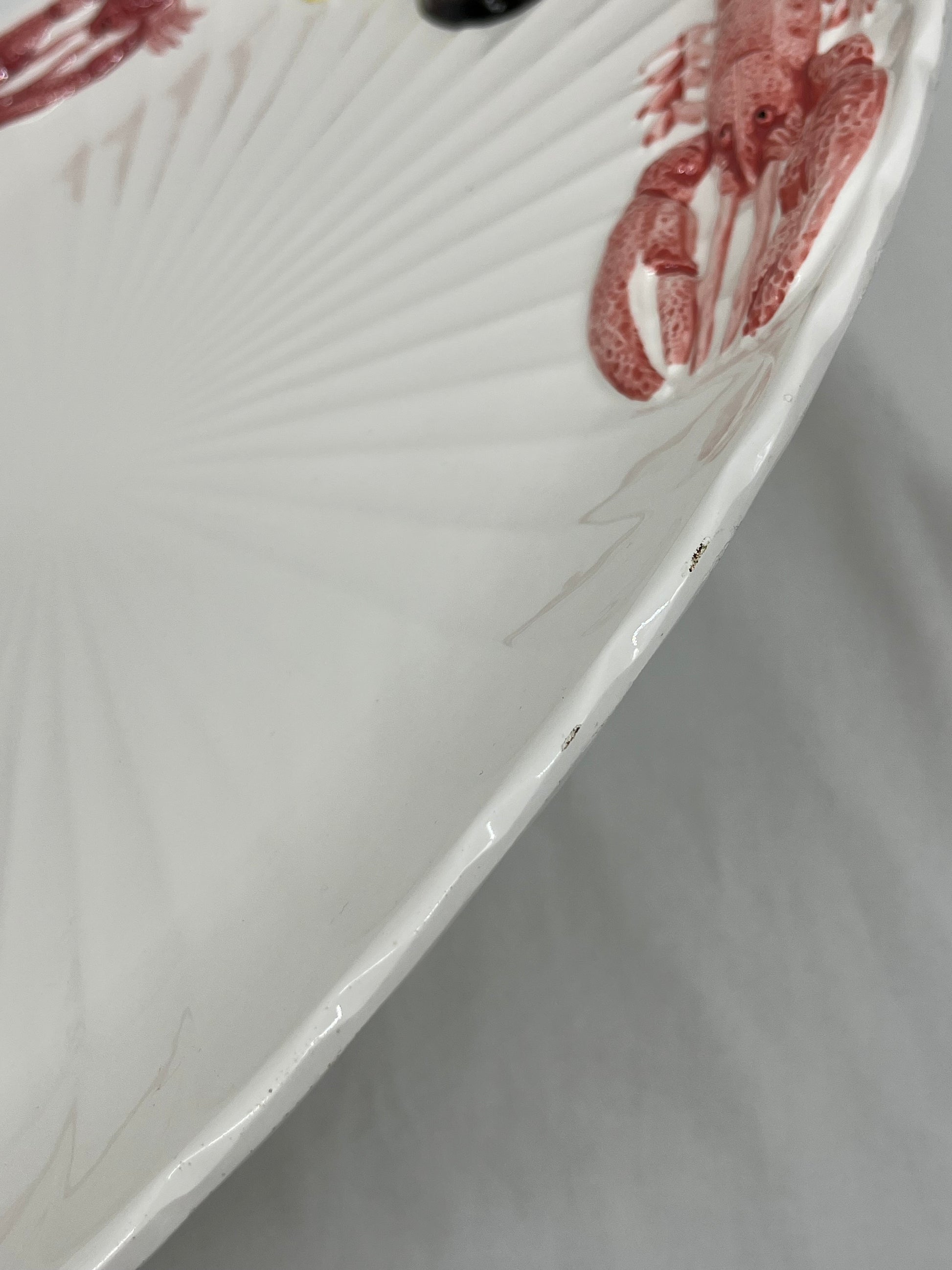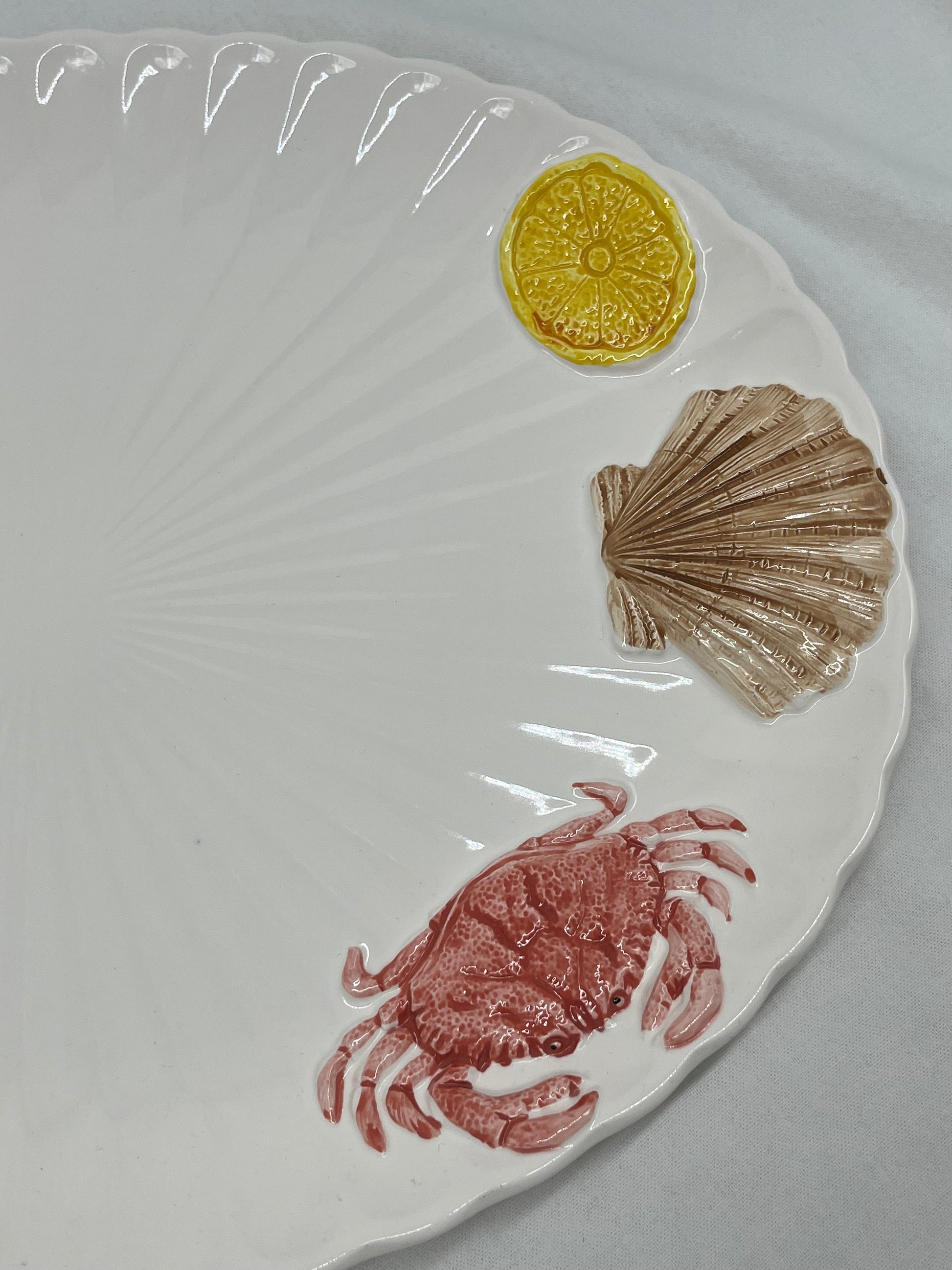 Skaldyrsfad fra 1970’erne produceret i Japan. Rillet ovalt fad med smuk af dekoration af skaldyr og muslinger. Små patinering på siden.