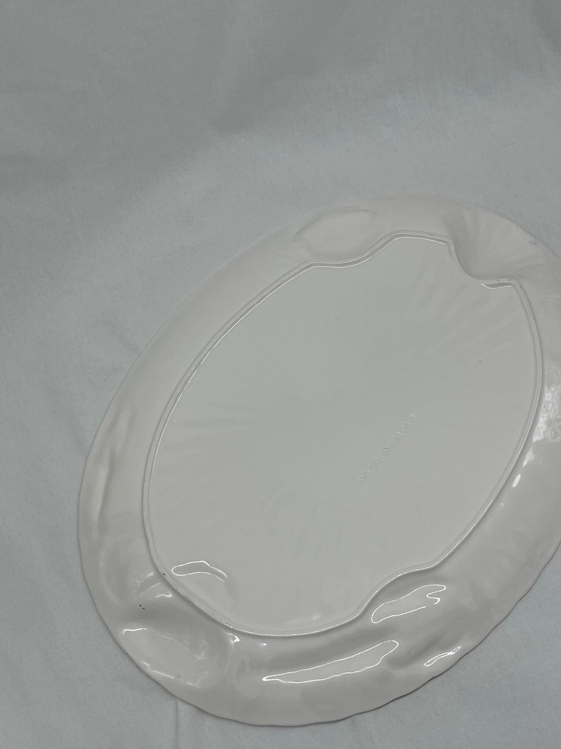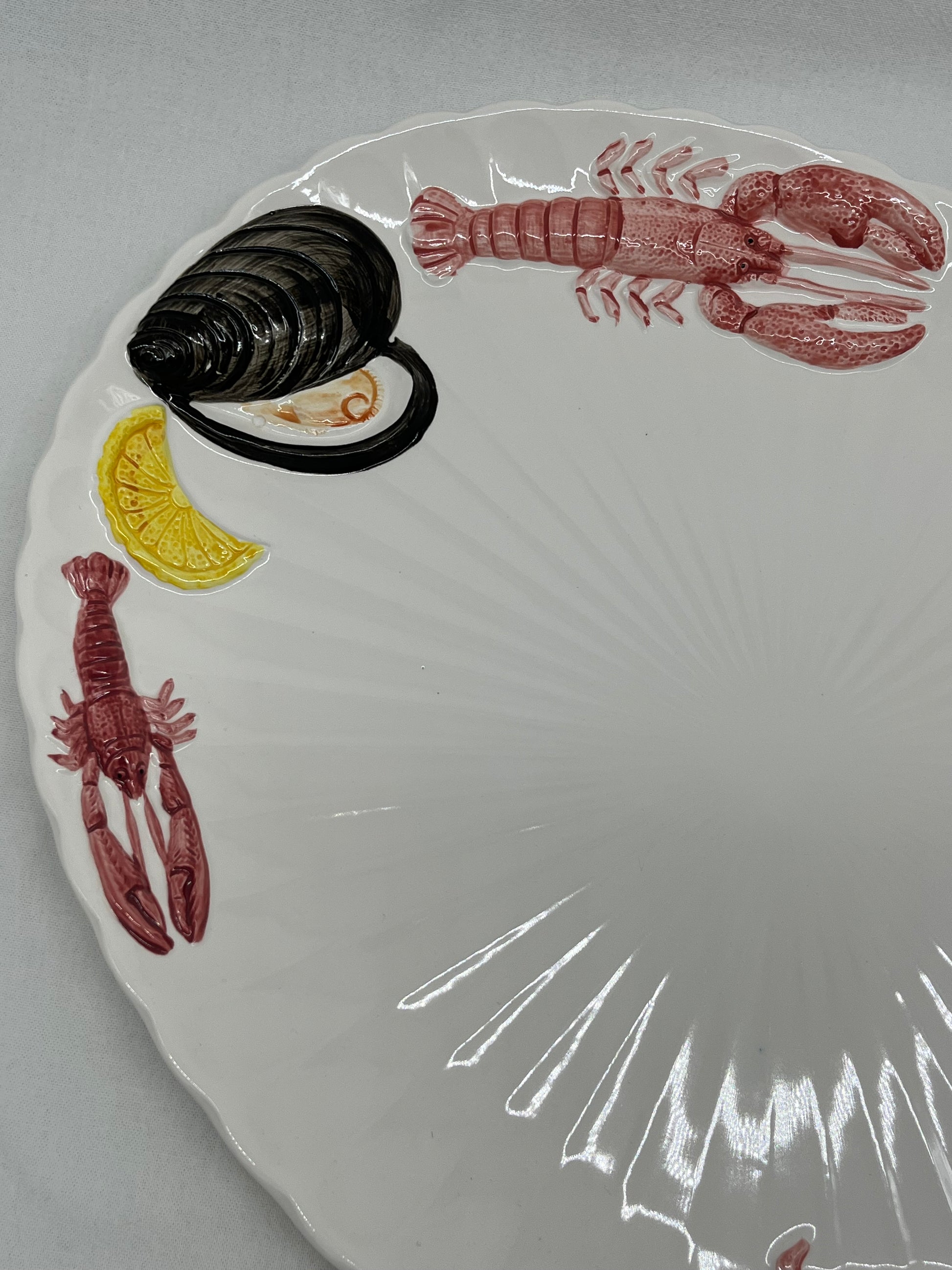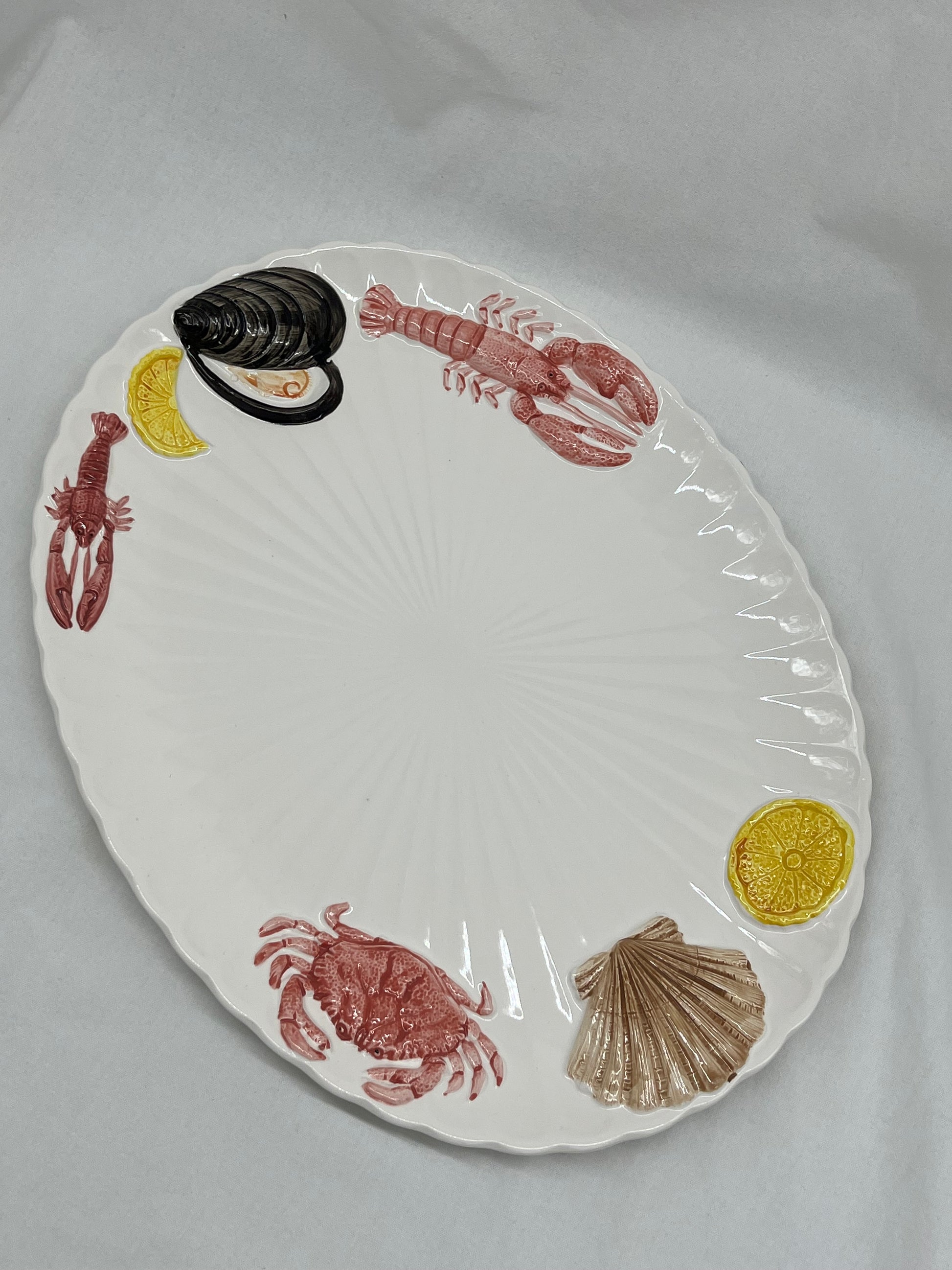 Skaldyrsfad fra 1970’erne produceret i Japan. Rillet ovalt fad med smuk af dekoration af skaldyr og muslinger. Små patinering på siden.