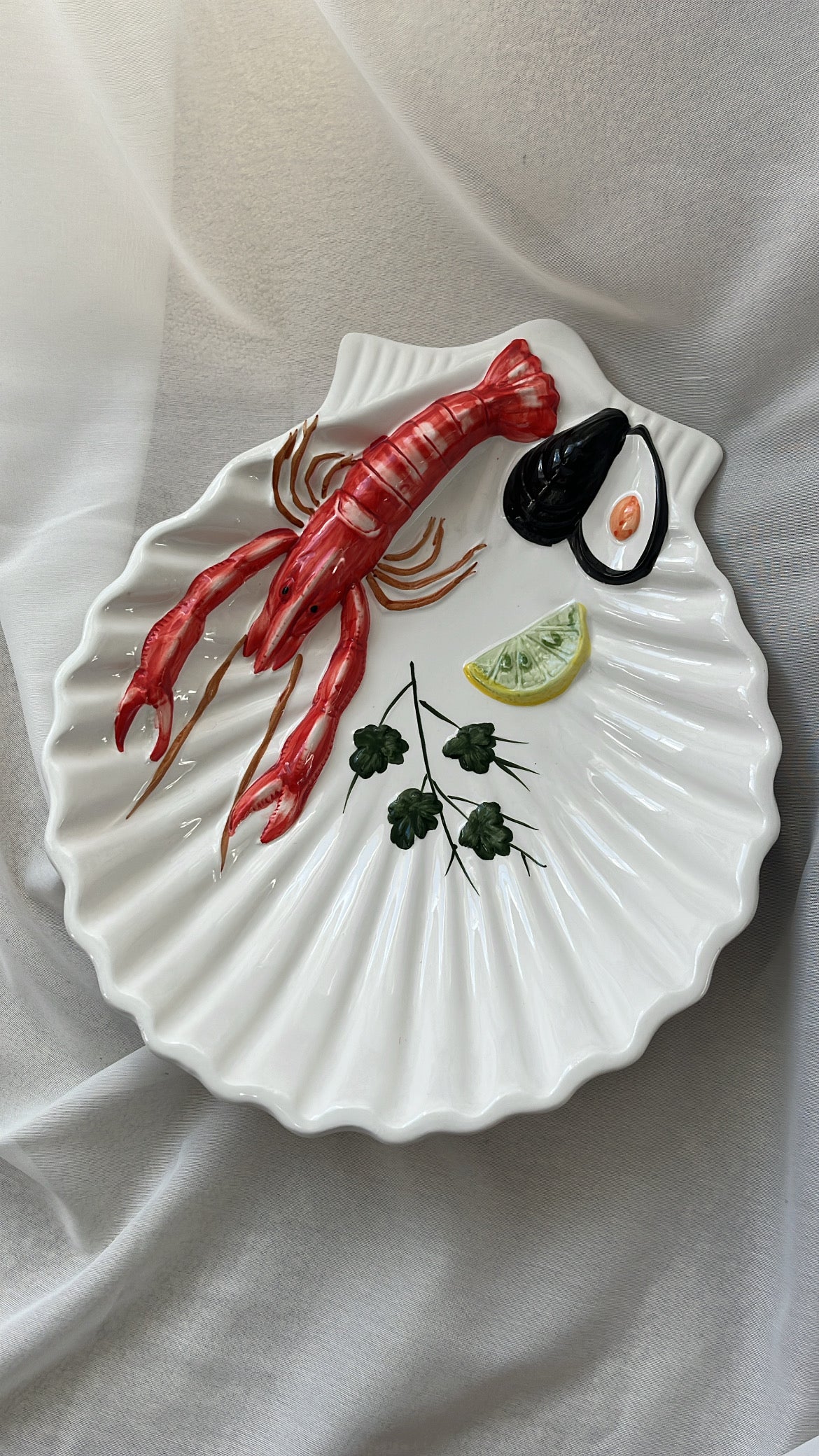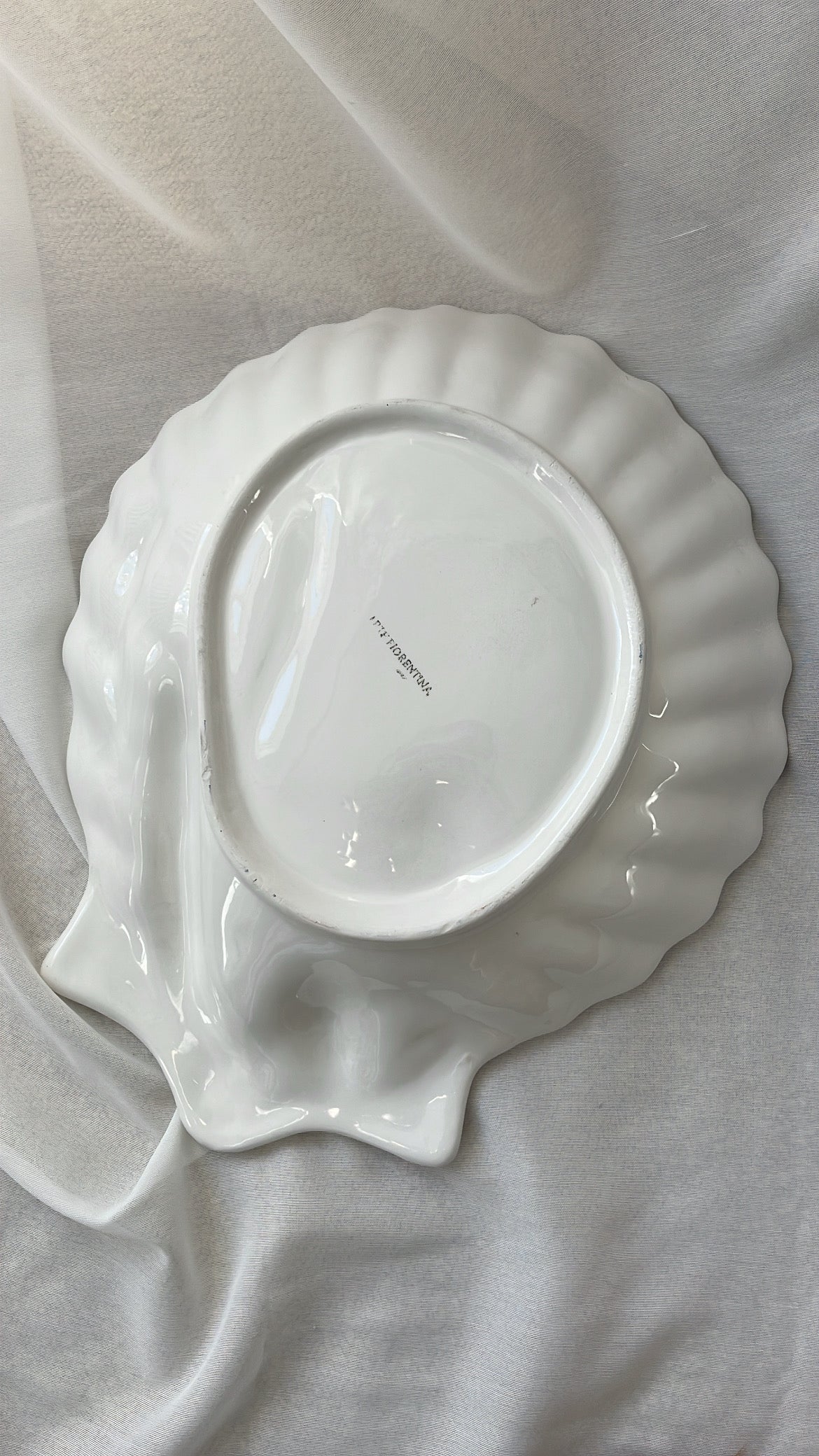 Smukt fad formet som musling med skaldyrsdetaljer. Perfekt stand.