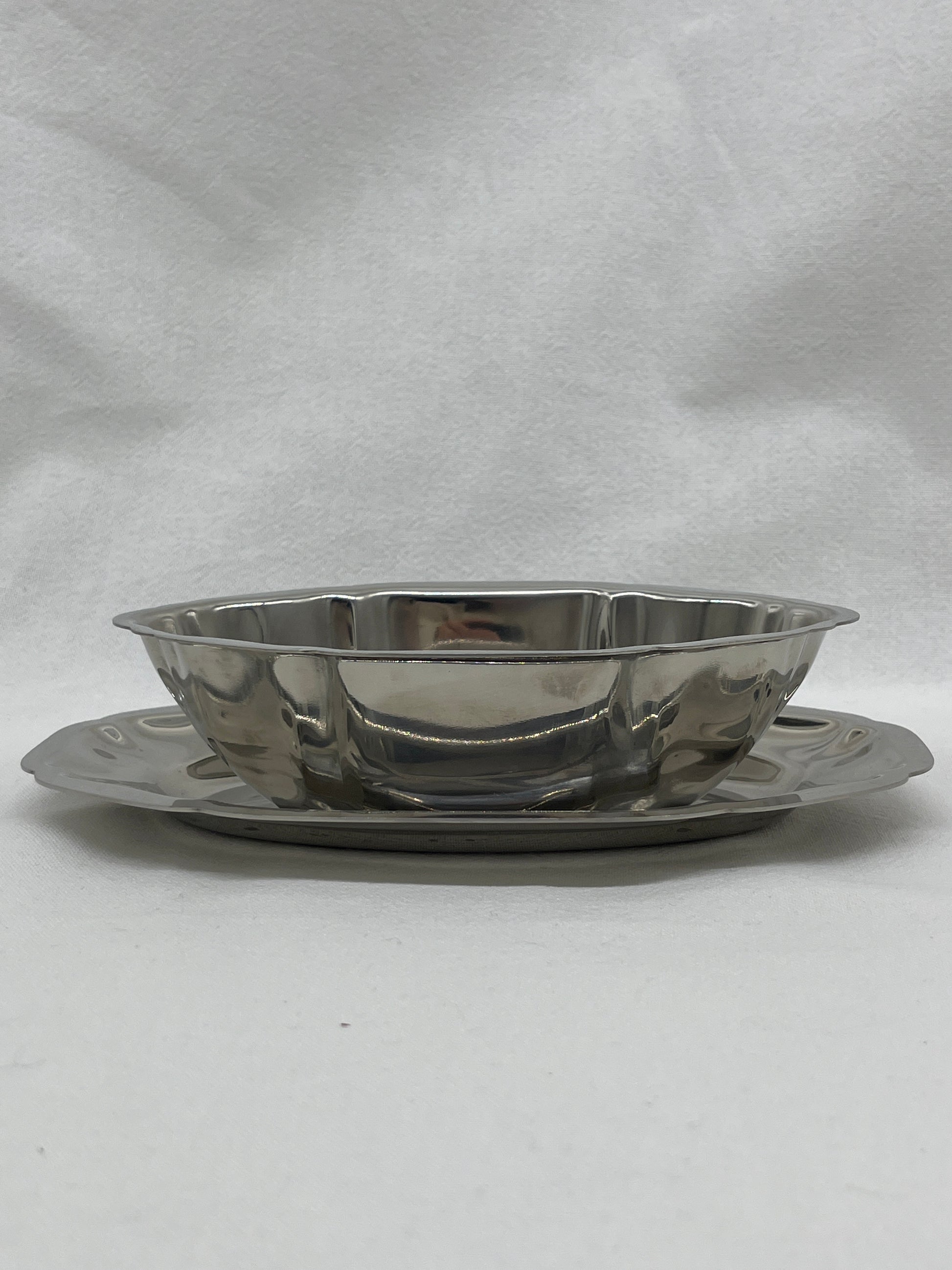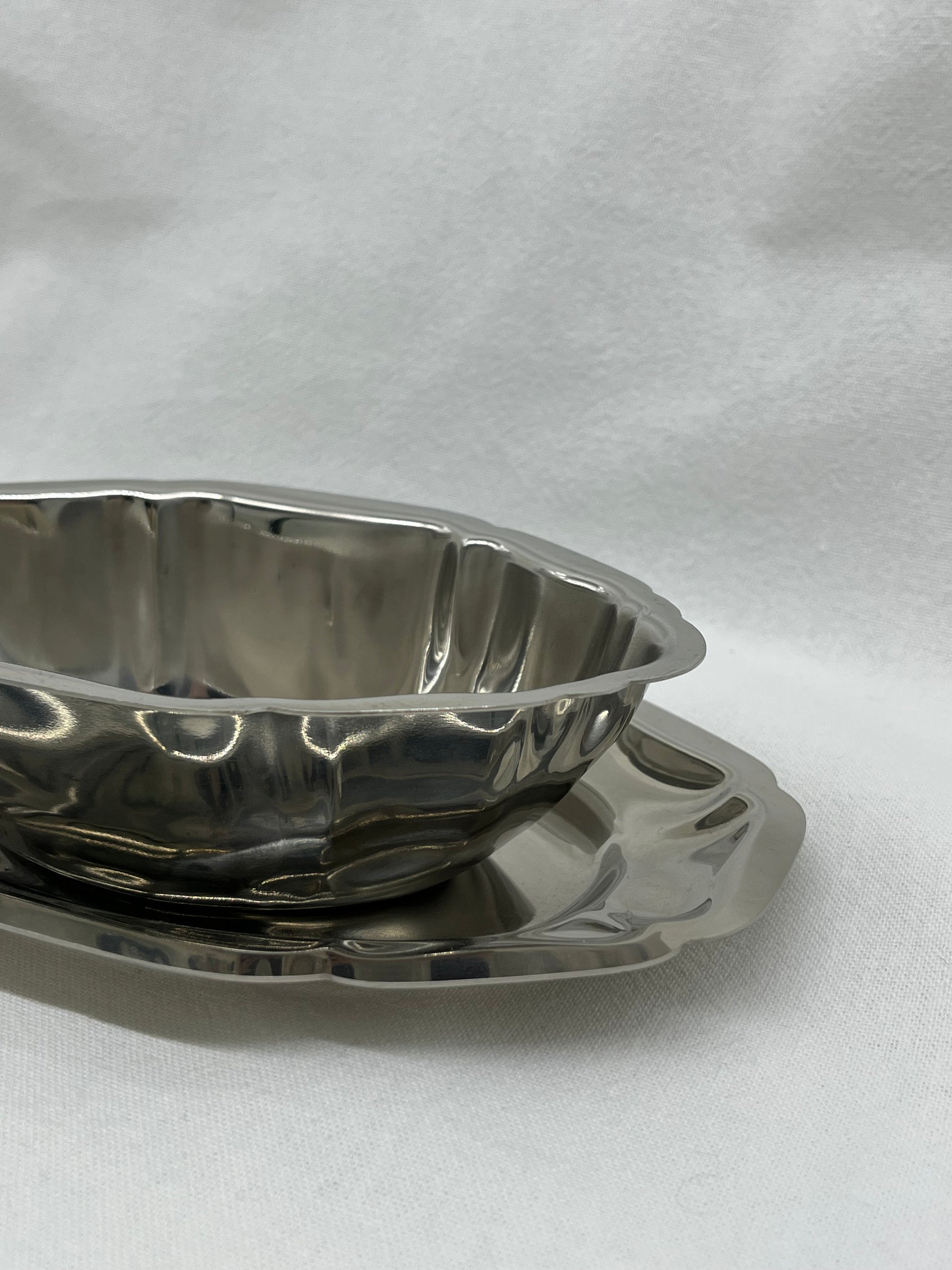 Italiensk stål sovseskål i stål. Smuk stand og tung.