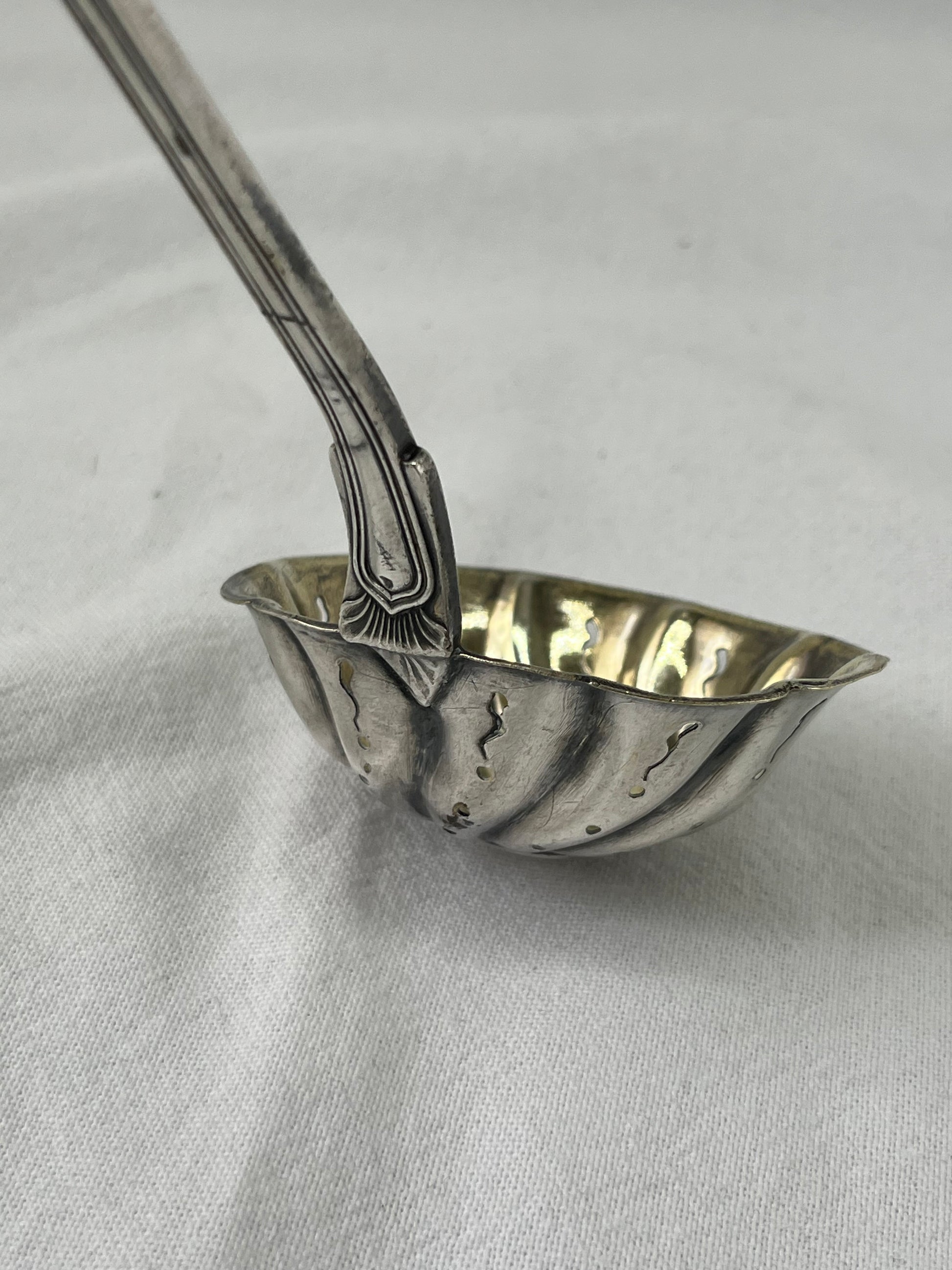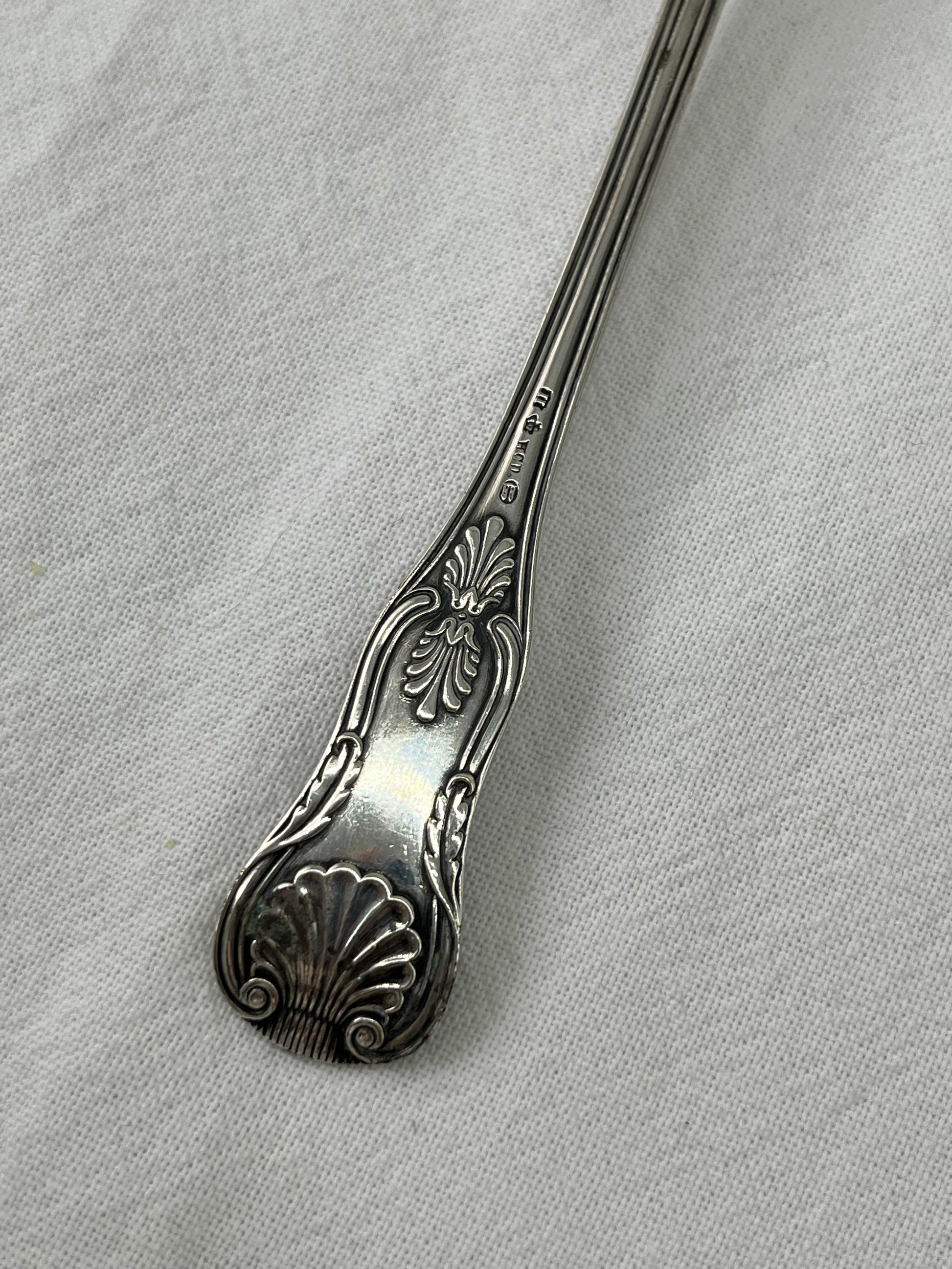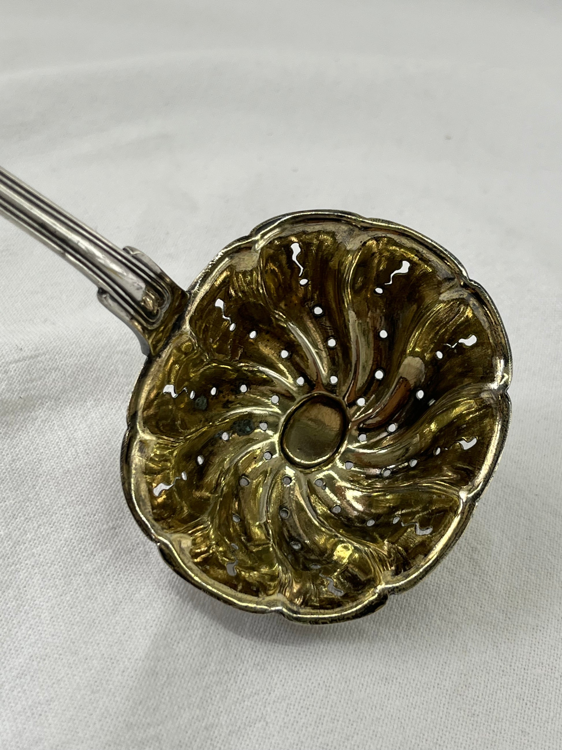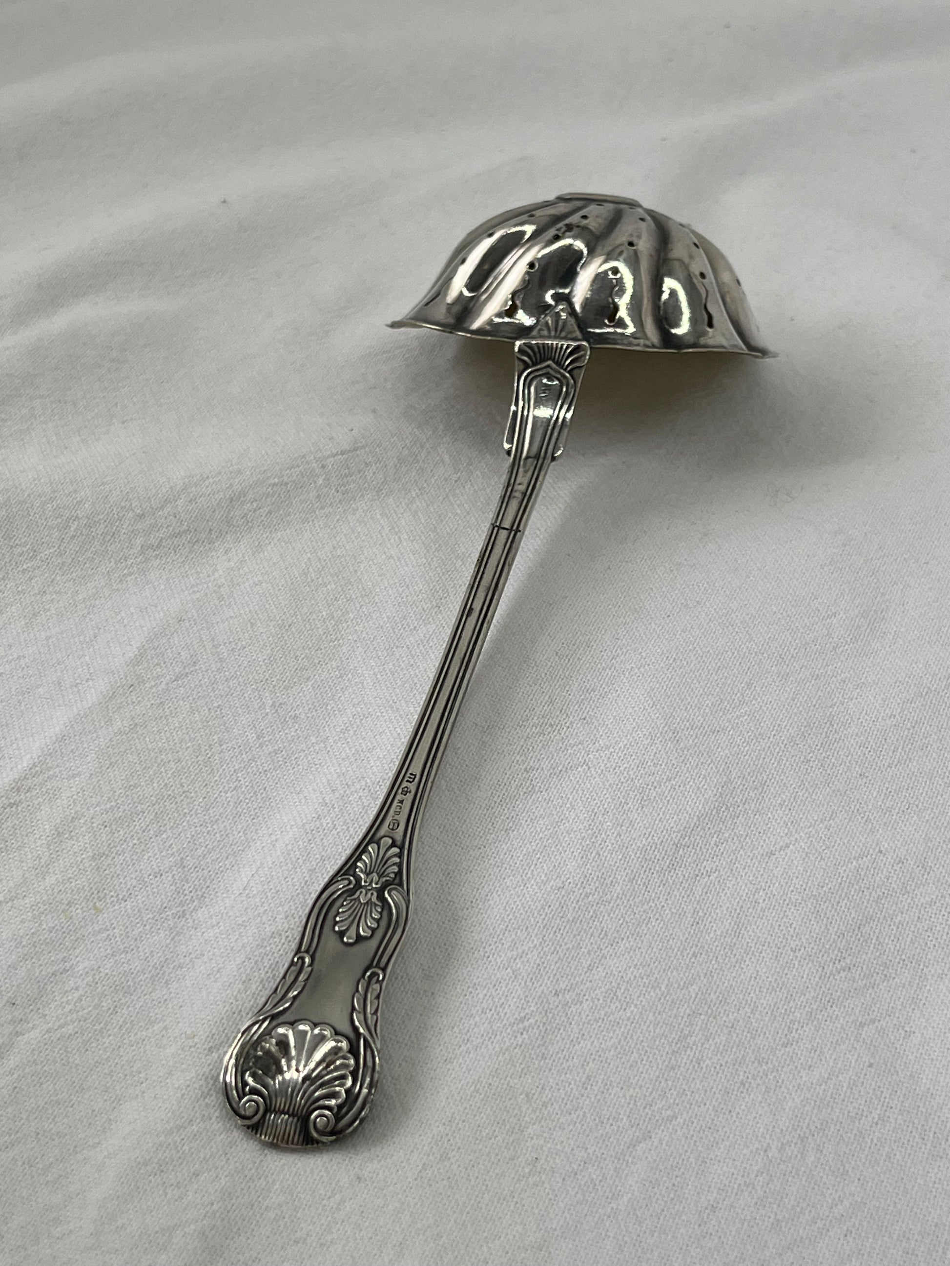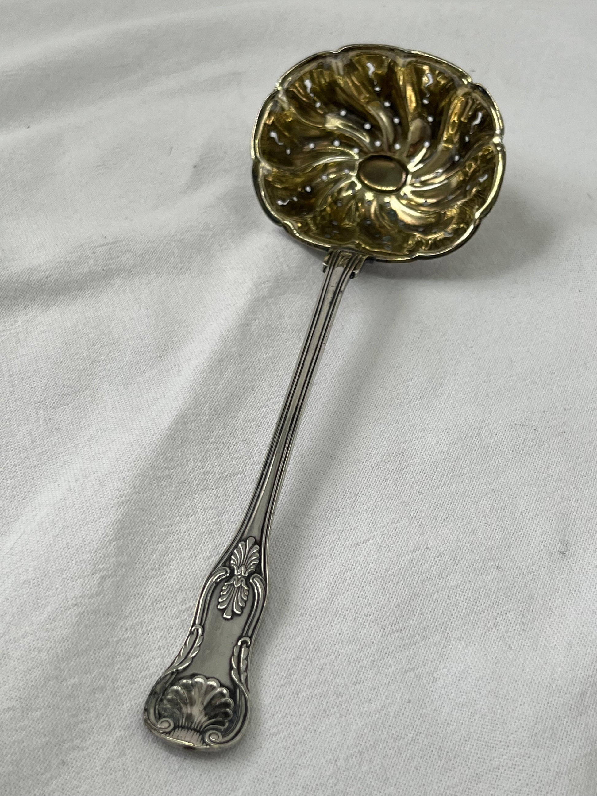 Sølvplet strøske til sukker. I “Kings pattern” design.